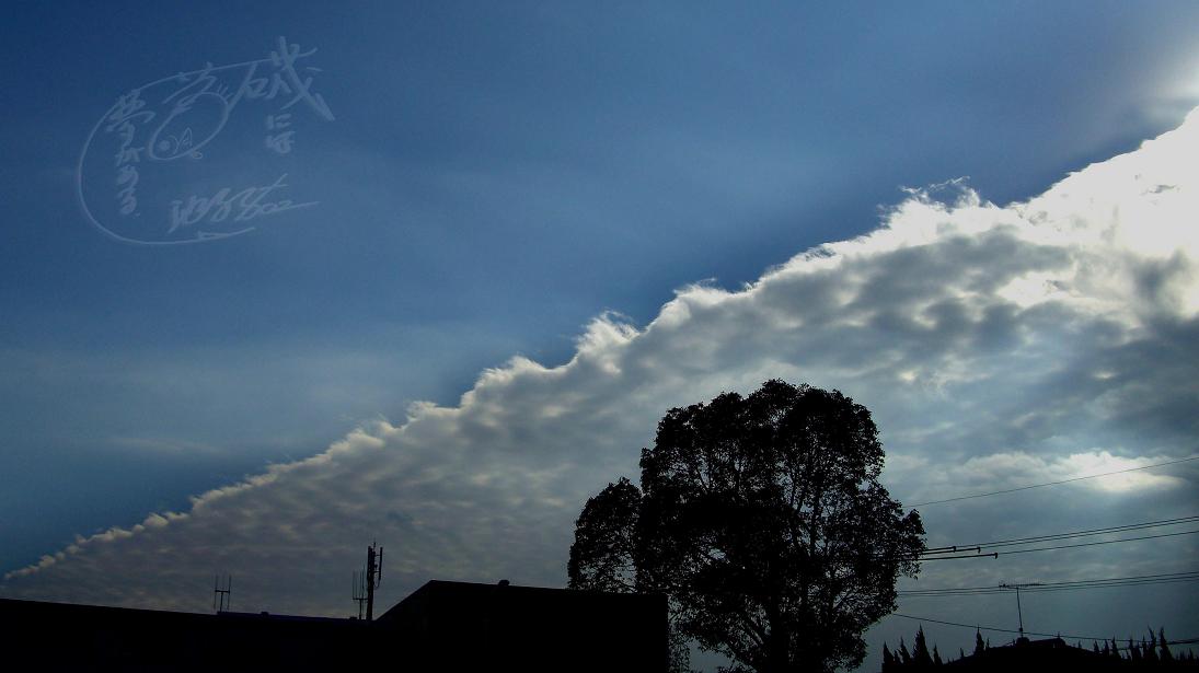 この様なハッキリした境は、寒冷前線の雲の最後尾に出現する事が多い。ほんで、通過後には北西の風が強くなる。