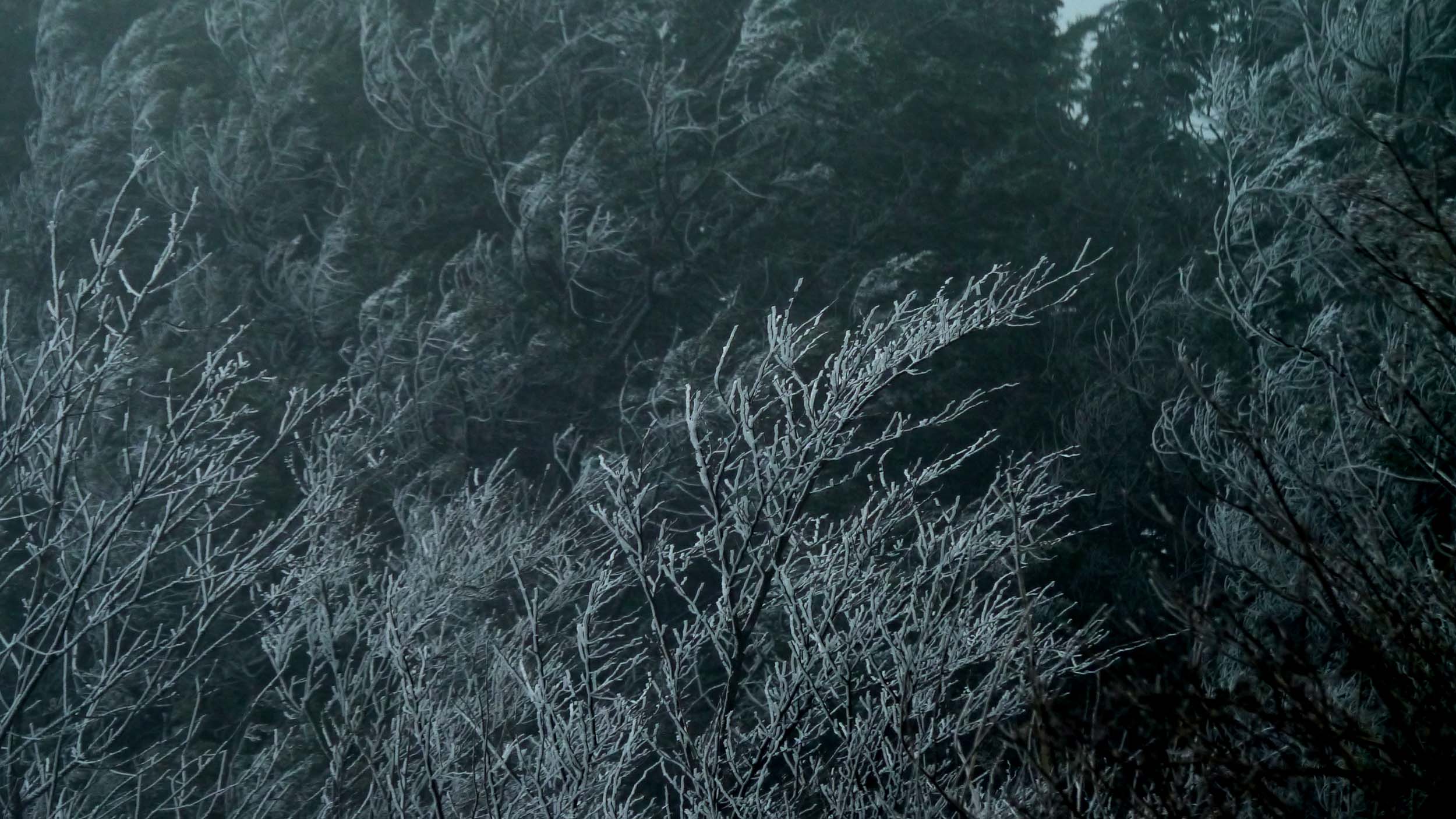 吹雪による樹氷
