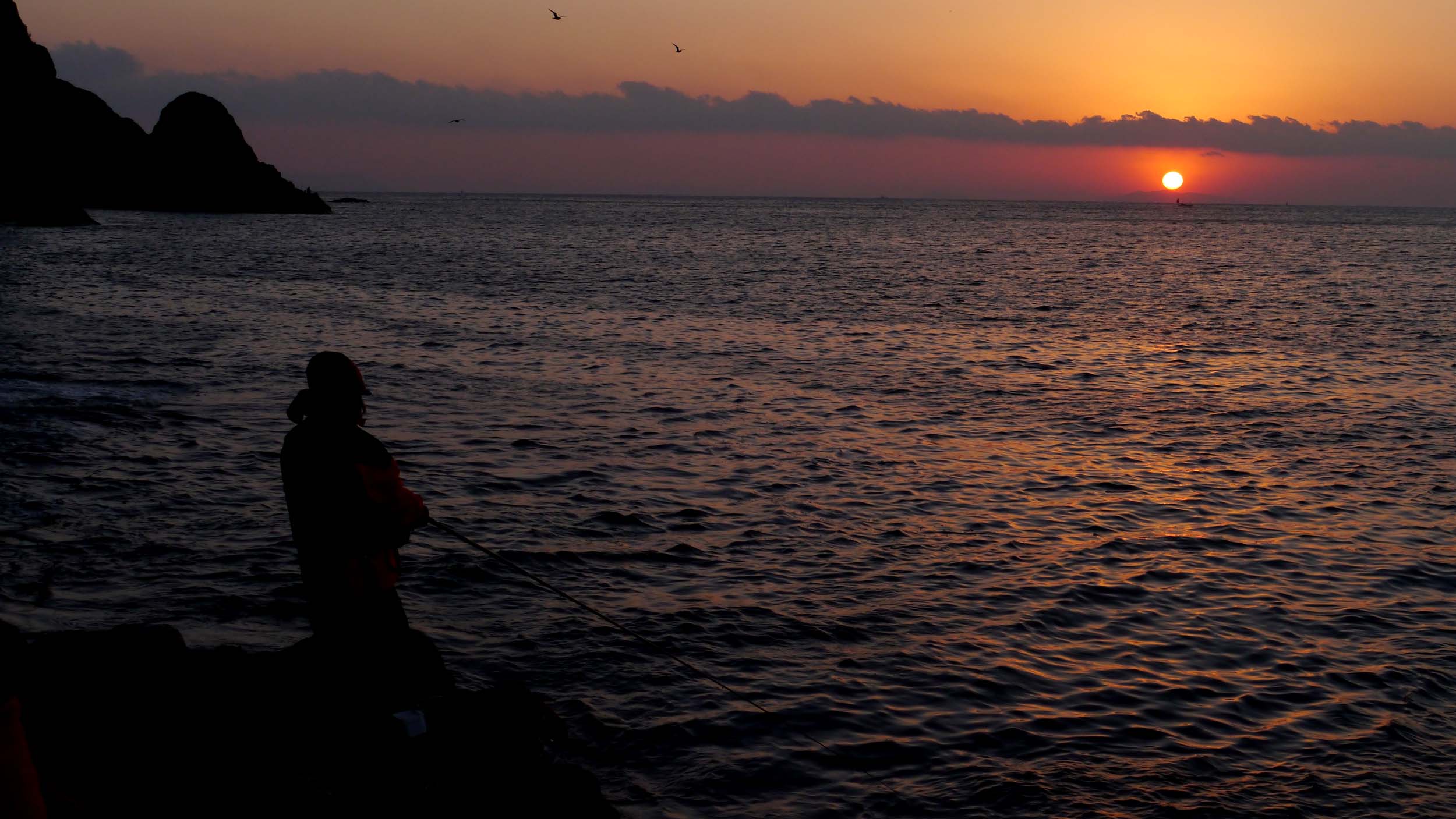 鶴見半島での初釣りでは日の出を写すことに成功。