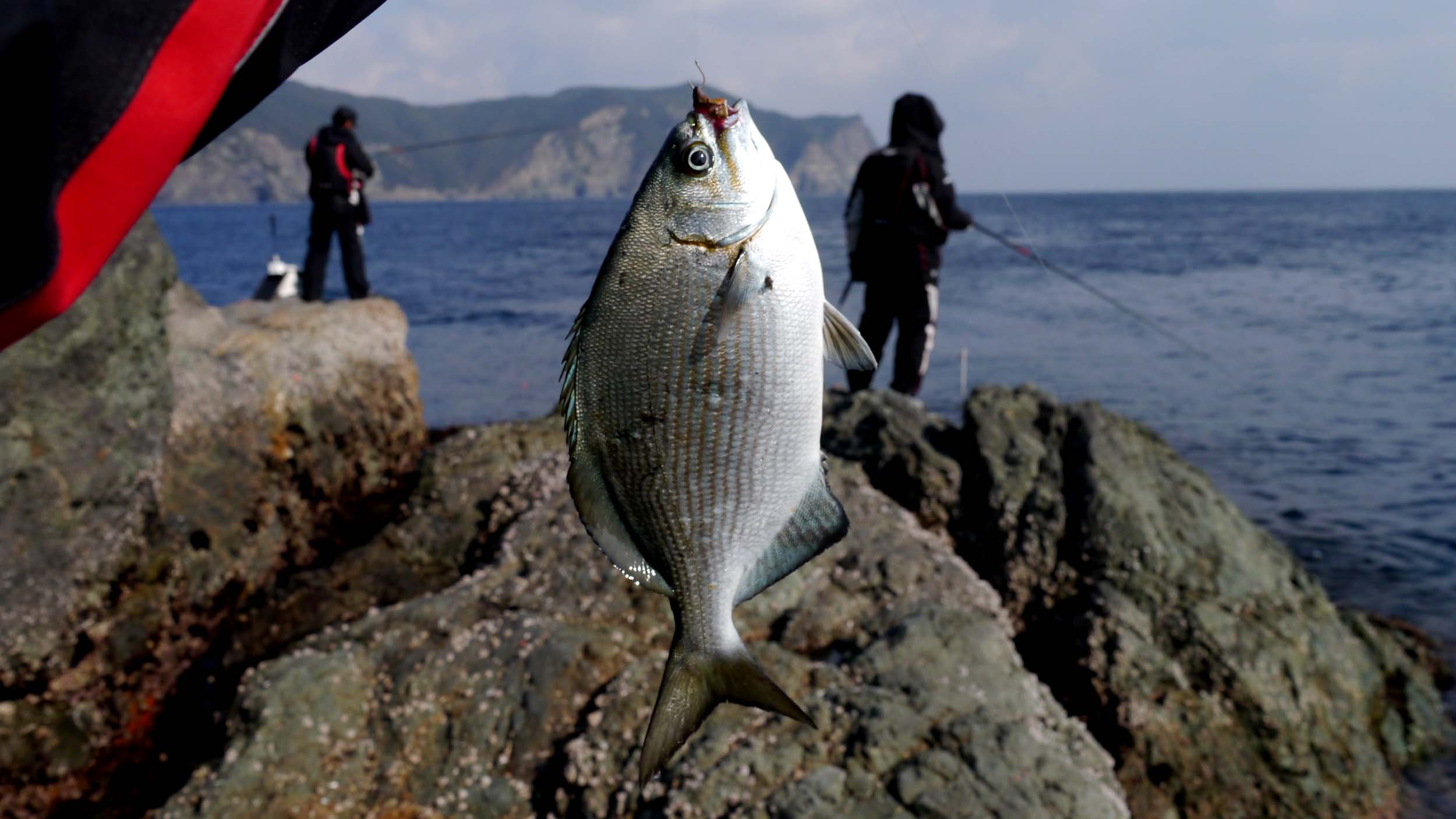 これらのエサ取りは相反するサシエを好むので、非常に厄介なコンビになっています。後はグレの活性に期待し、キタマクラを潮の緩い場所や磯近くに集めつつ、潮の動いている場所を狙ってトウゴロウイワシのエサ取り対策を行い、極力浅棚(1~2ヒロ)でグレを狙ったのです。アタリは明確で、時にはフカセからまん棒が横に動いて釣れる事も・・・