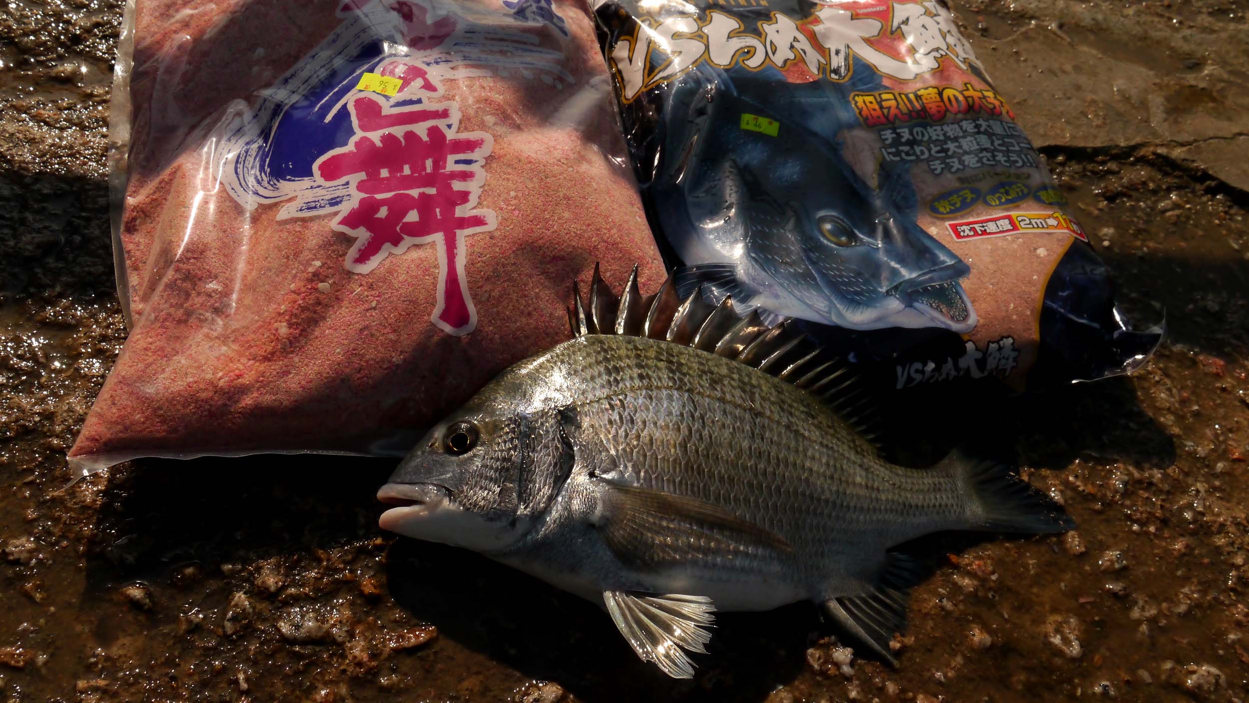 チヌ、オキアミ3㎏とつり万の集魚剤2袋を3セット使った