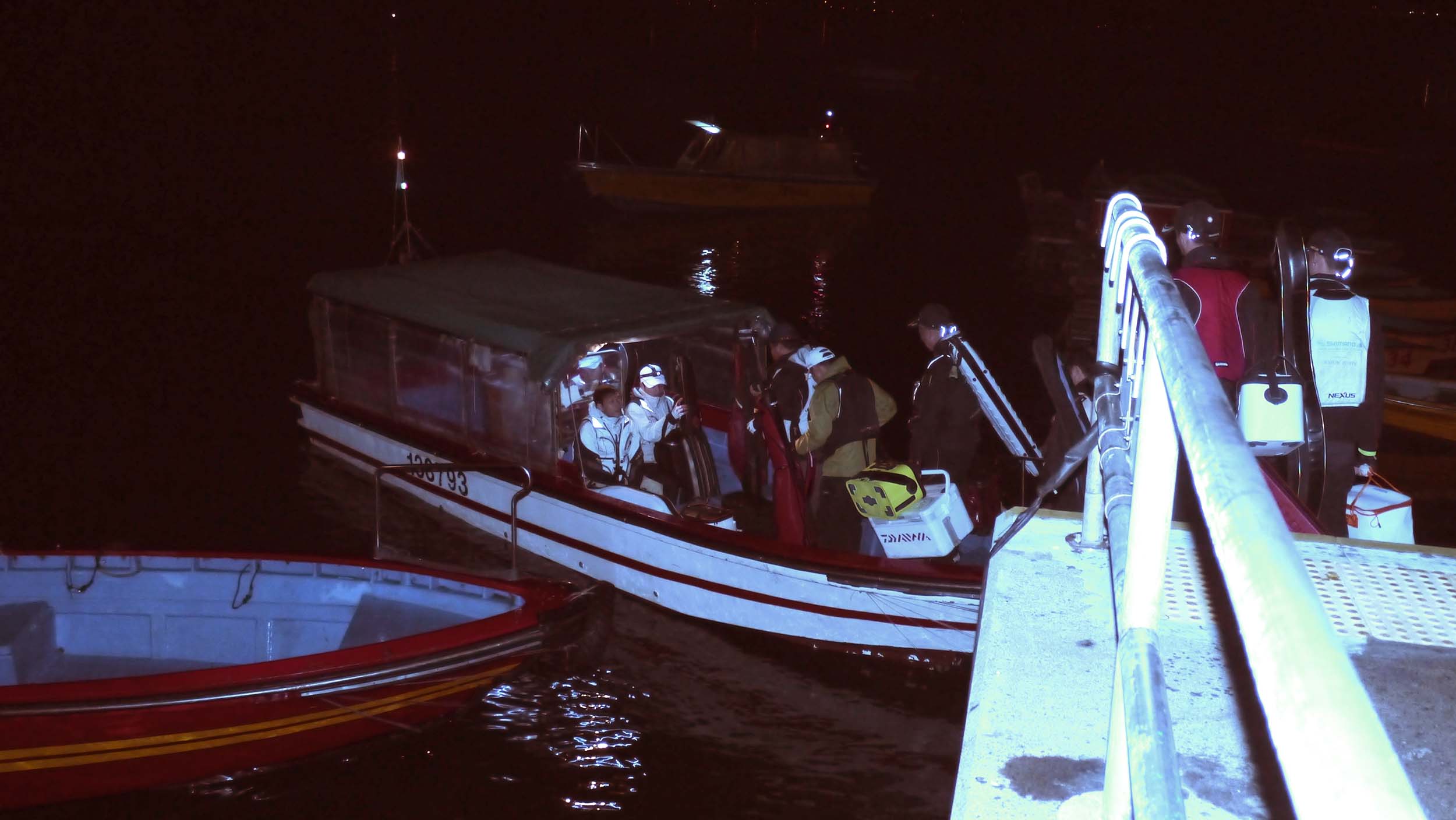 エントリーが多くて抽選で選ばれた120名の選手が、12隻?の渡船に分乗し、それぞれの磯へと渡って行きました。出港は6時で納竿が16時00分、対象魚はチヌの総重量で競われました。