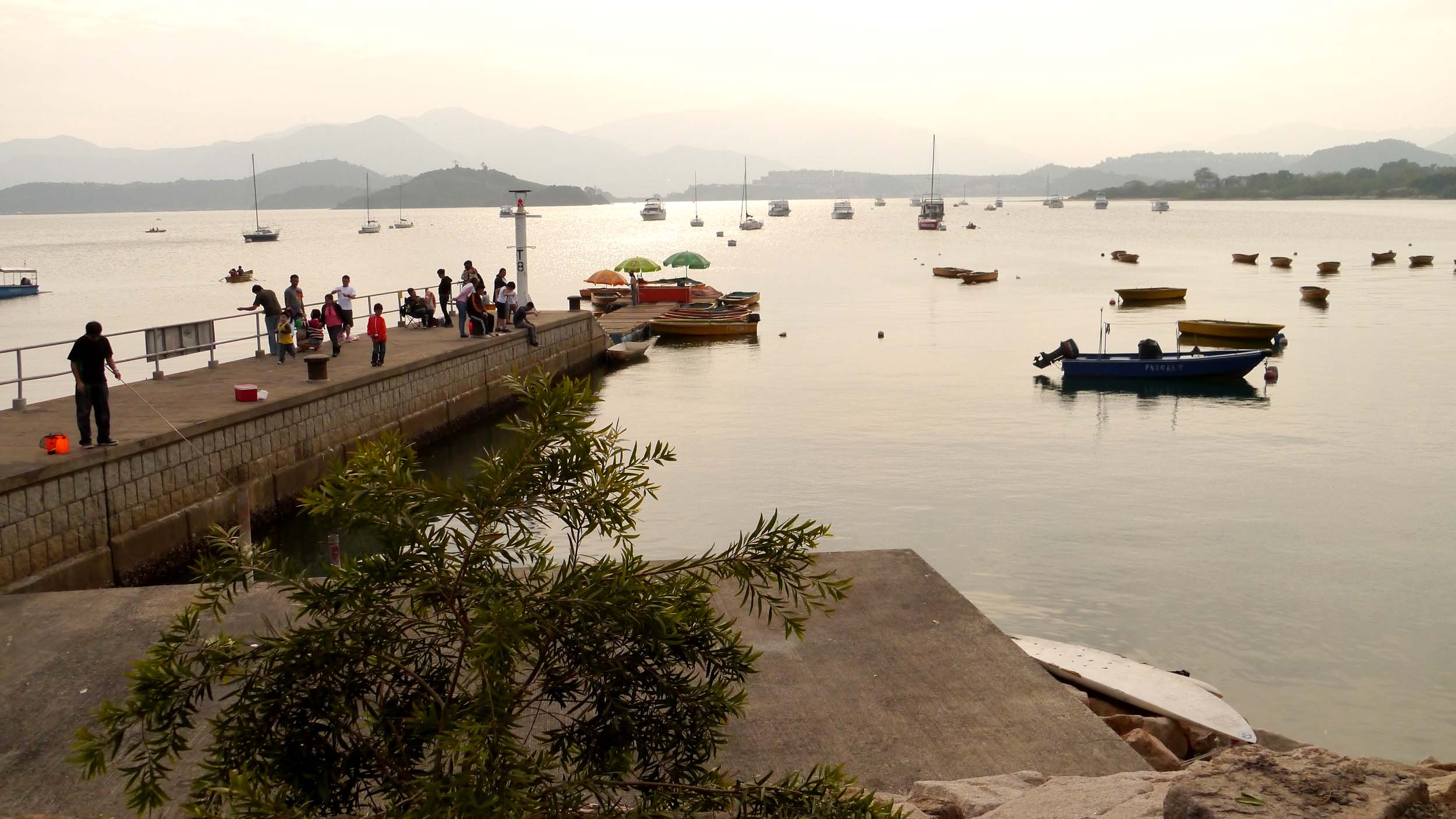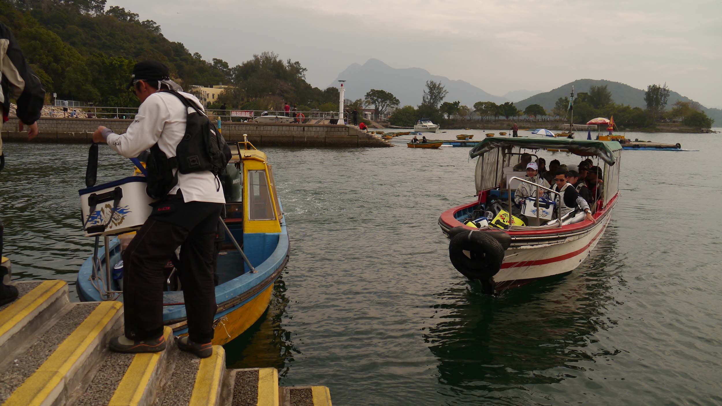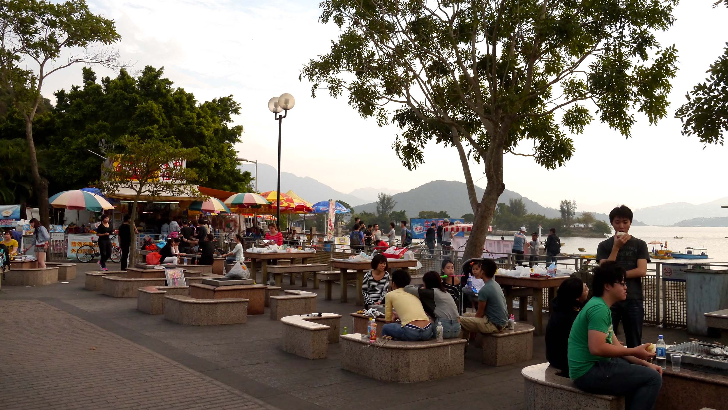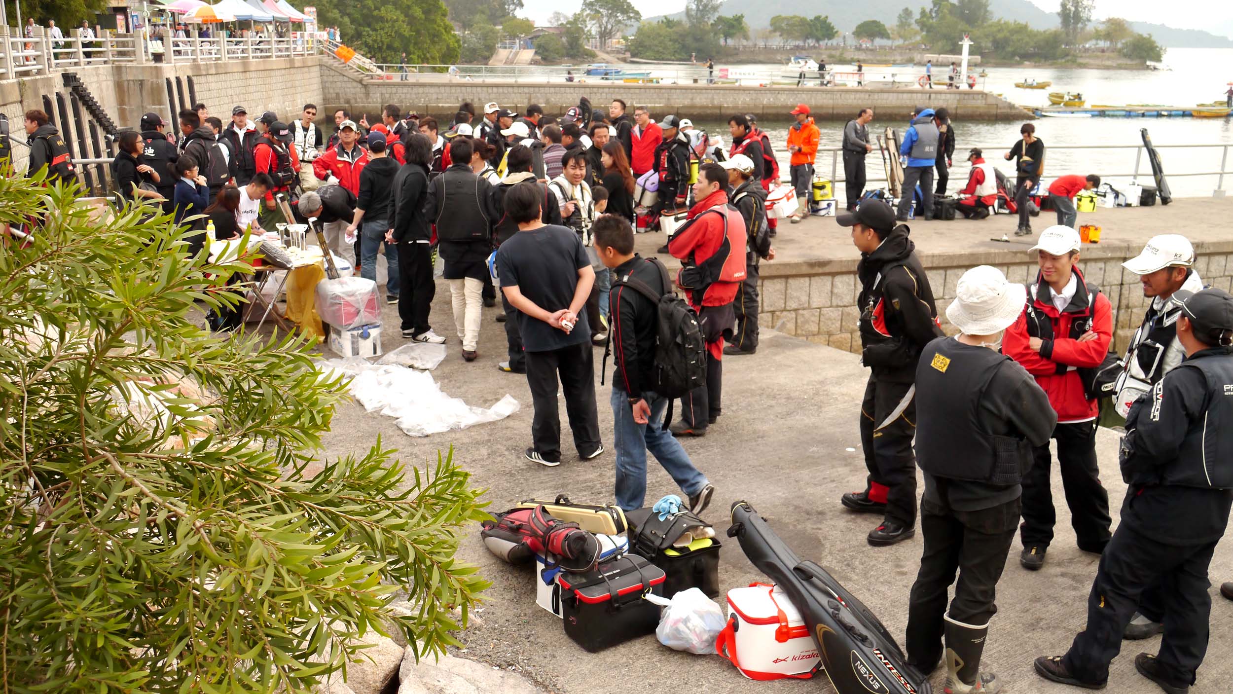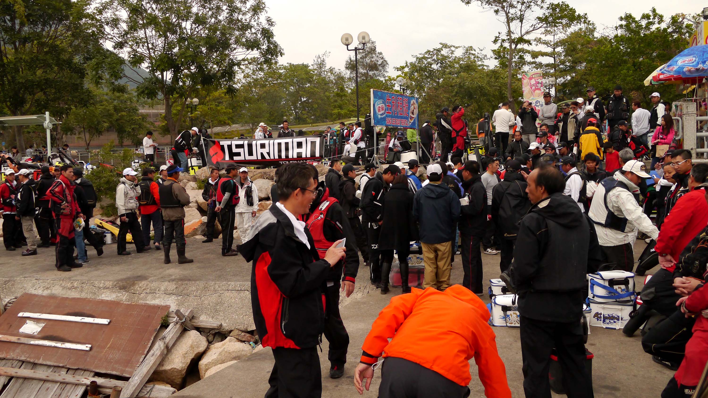 大会場所は新界の北東方面で、至る所にチヌ釣り場が点在しています。スタッフと共に戻った私は、昼食後には大会本部の設営などを行って選手達を待ちます。この本部は公園の一角で、ファミリーや観光客が大勢行き来しています。海には貸しボートなど、マリンスポーツも盛んな場所で、全体が自然を生かしたレジャーランドになっている所です。