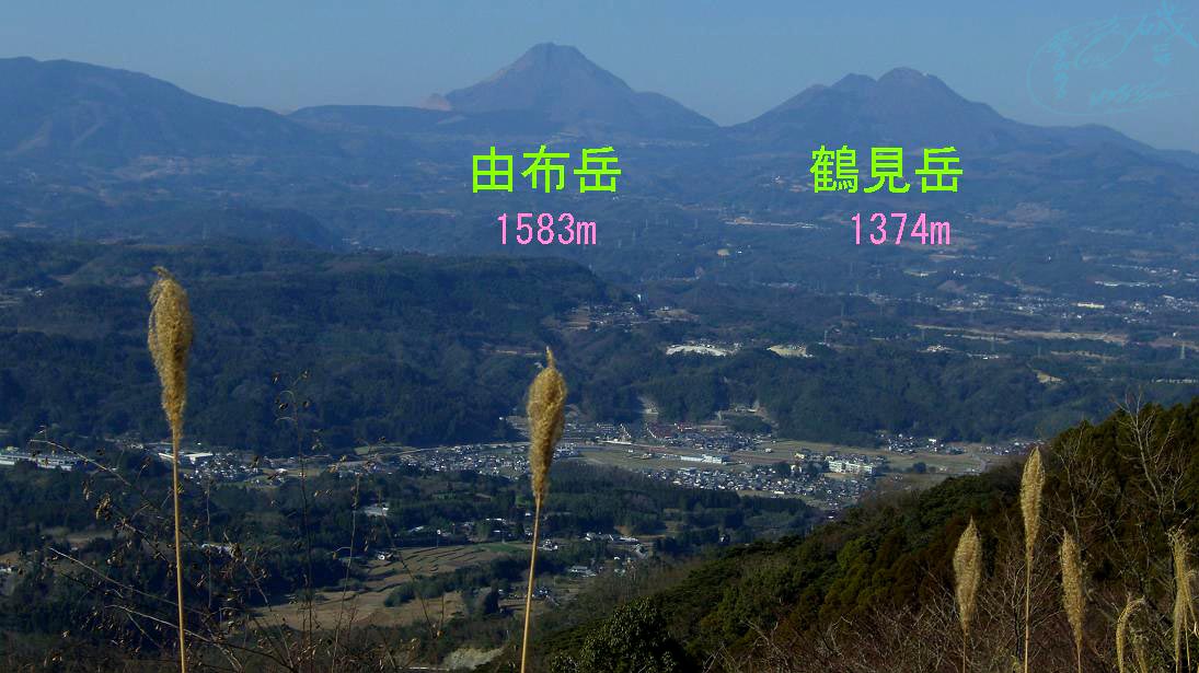 野津原(のつはる)の山から北西側に向くと、観光地としてオレより有名な、由布市の由布岳と別府市の鶴見岳が並んでいる。