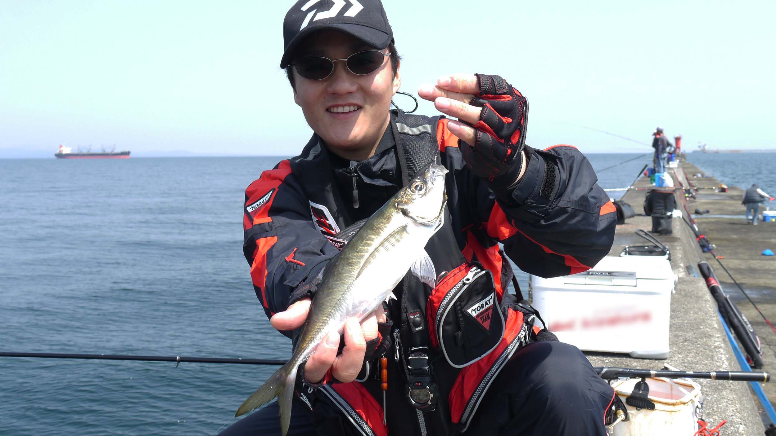 同行者は若手釣り師の植木君。8時出港~16時帰港の工程でした。船長に釣況を尋ねると、沖一文字と新波止が良いとの事。個人的には新波止に渡りたかったのですが、同船の他の釣り客が沖一文字を目指していたので、約3㎞ほど西側の新波止まで行かなくても良い様に、私たち二人も沖一文字に上がったのです。