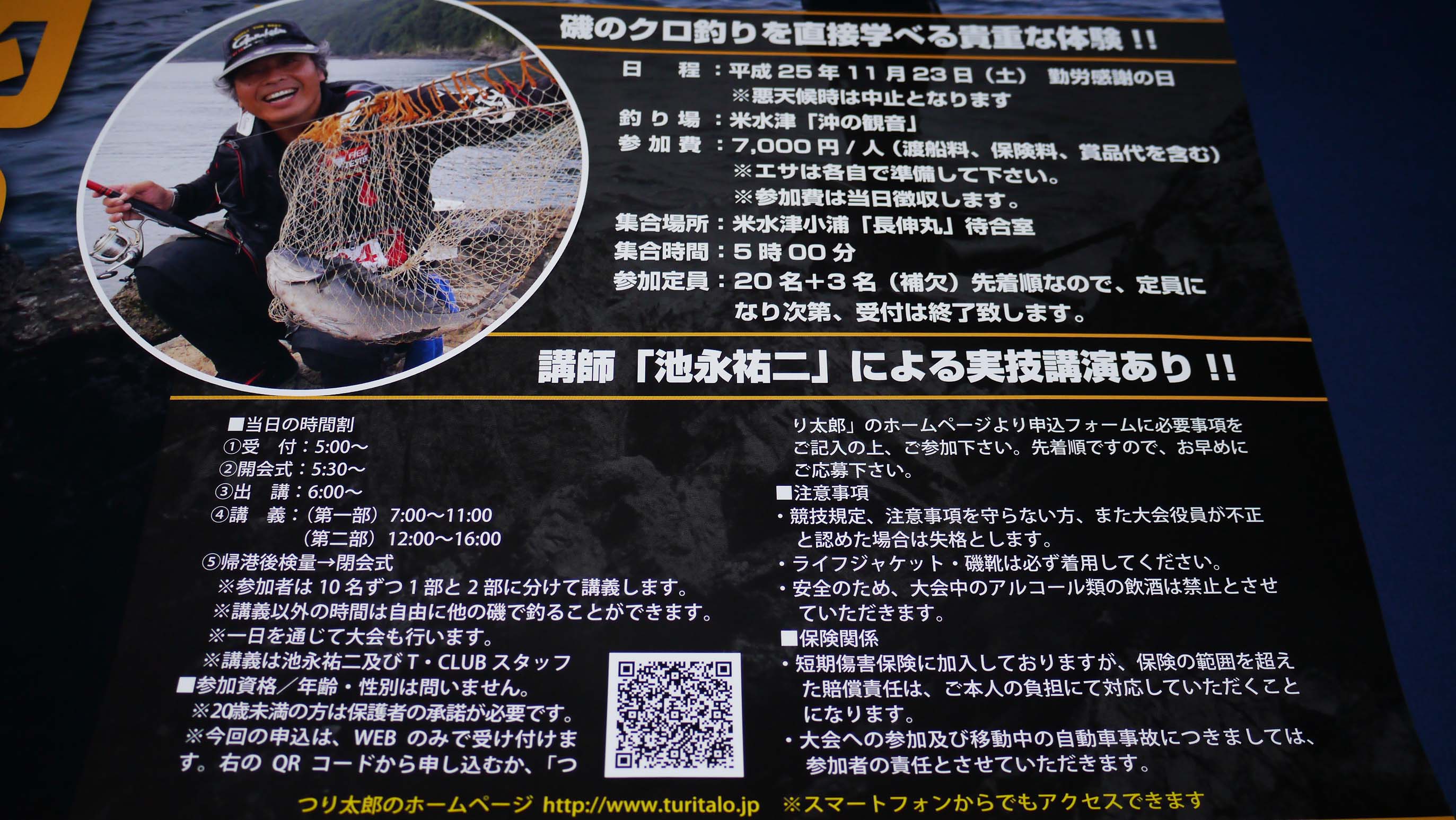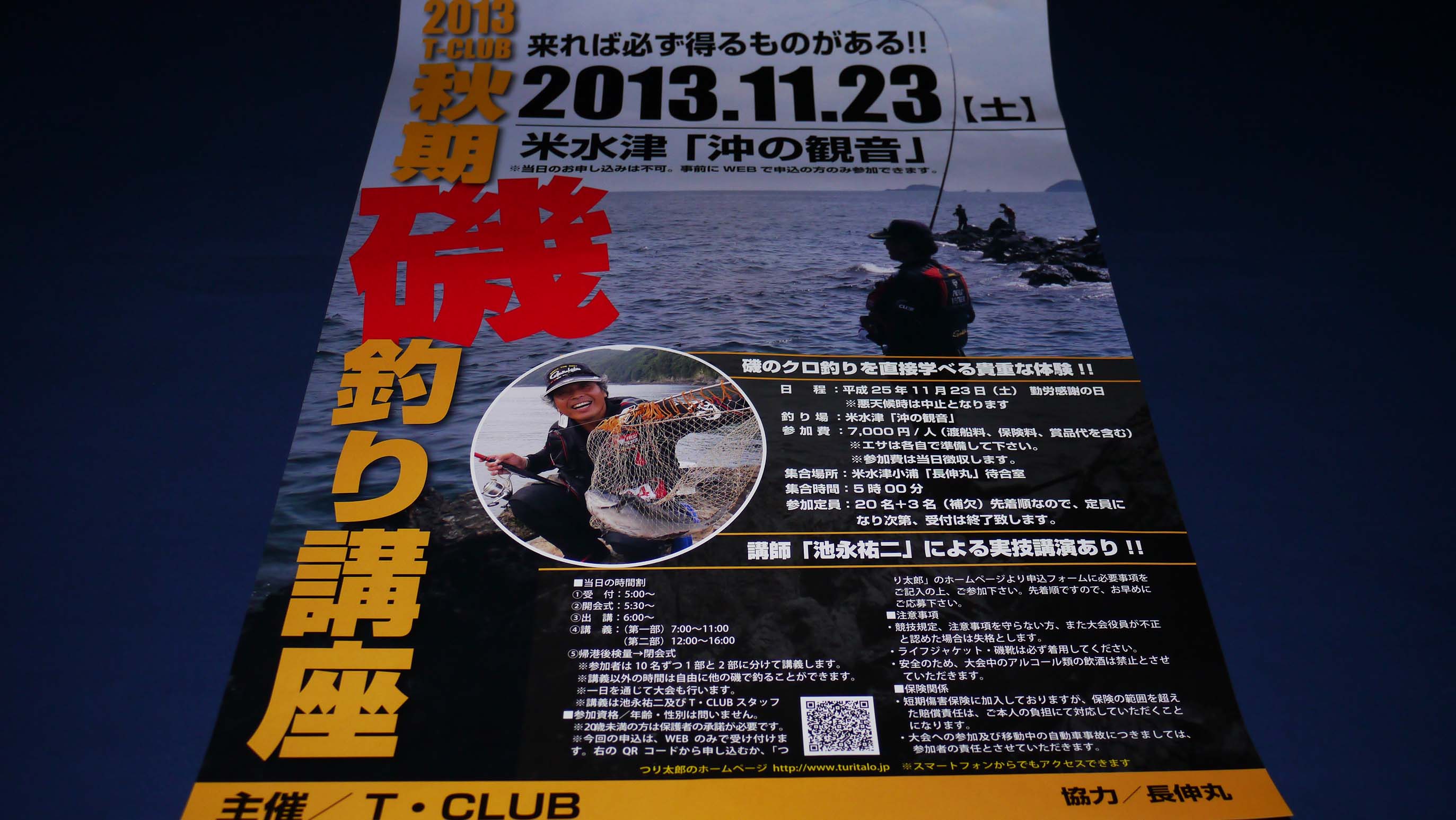T=CLUB主催の磯釣り講座、20名に達していましたがキャンセルが出ました。
