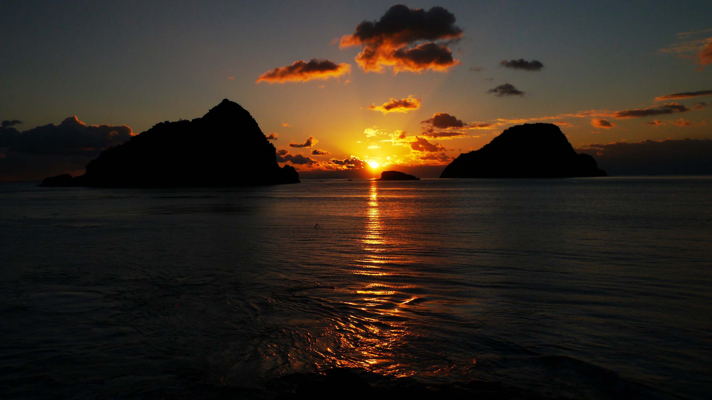 沖の黒島と地の黒島の間にある千畳敷からの朝日