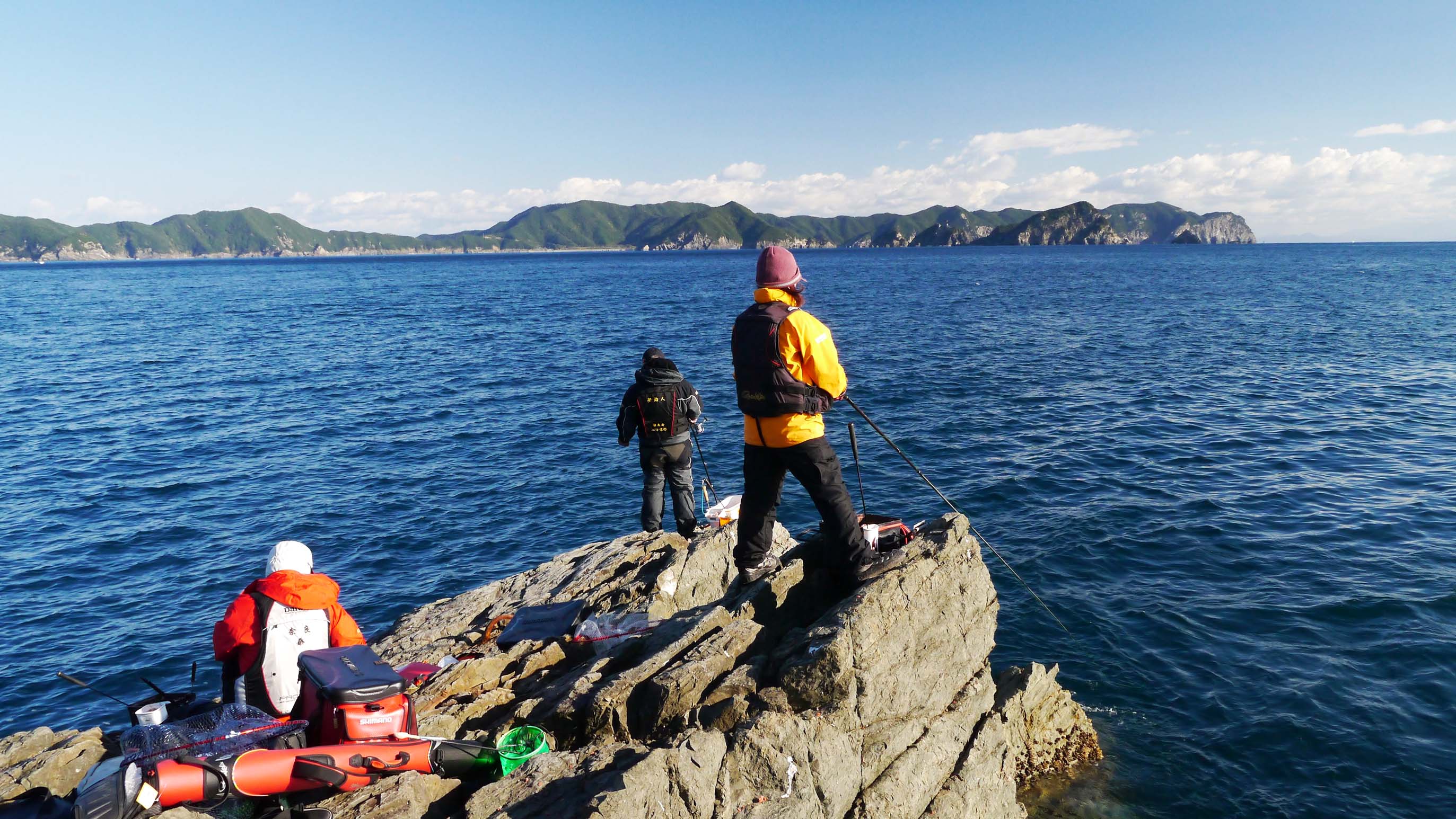 奈良から来たお二方と4人、夜明けから向かったのは再び長太バエ。朝は満ち潮が残っており、東側から竿出しです。磯際のエサ取りは少なく、三人とも竿を曲げてくれます。