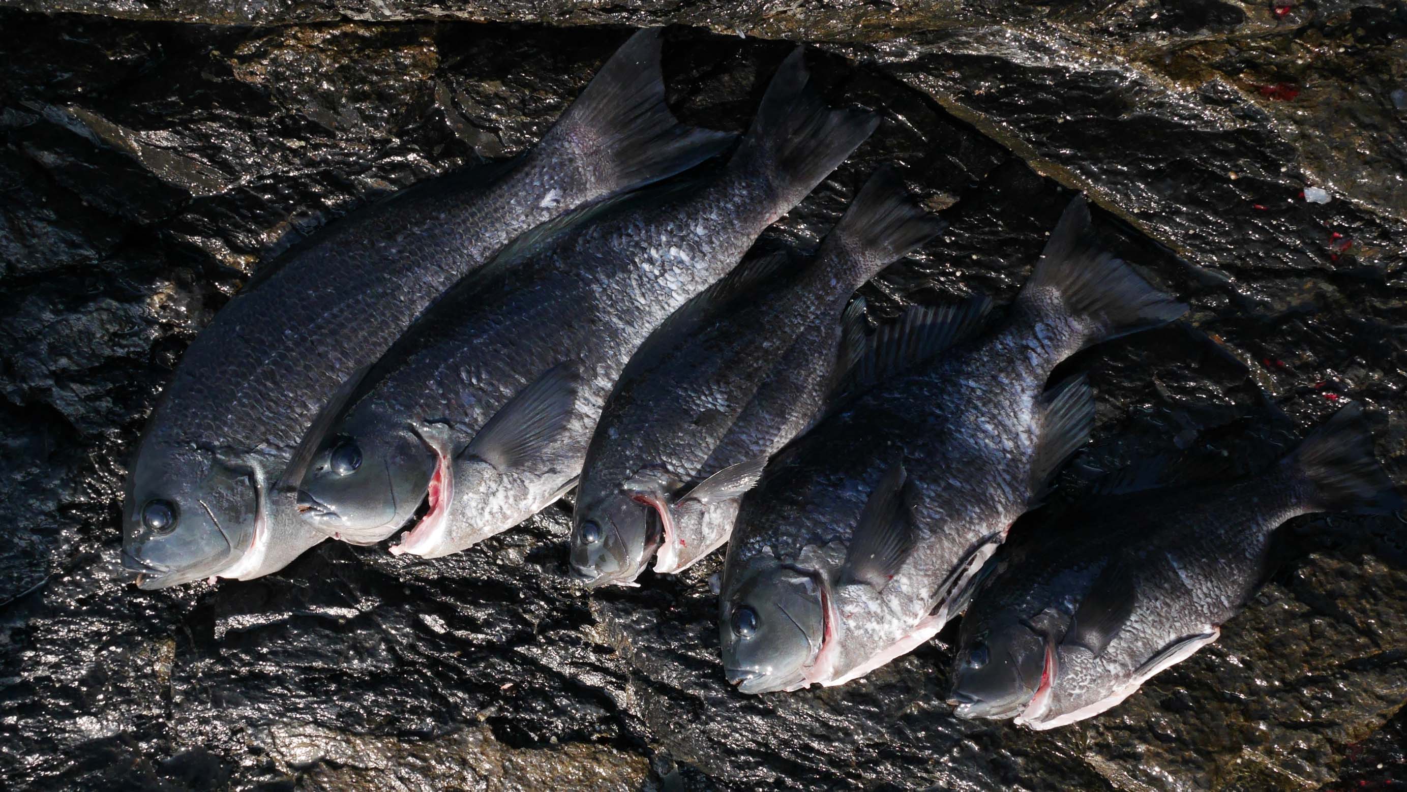 磯の上で腹を出してウロコもすべて取り払い、コモクールの中へ。