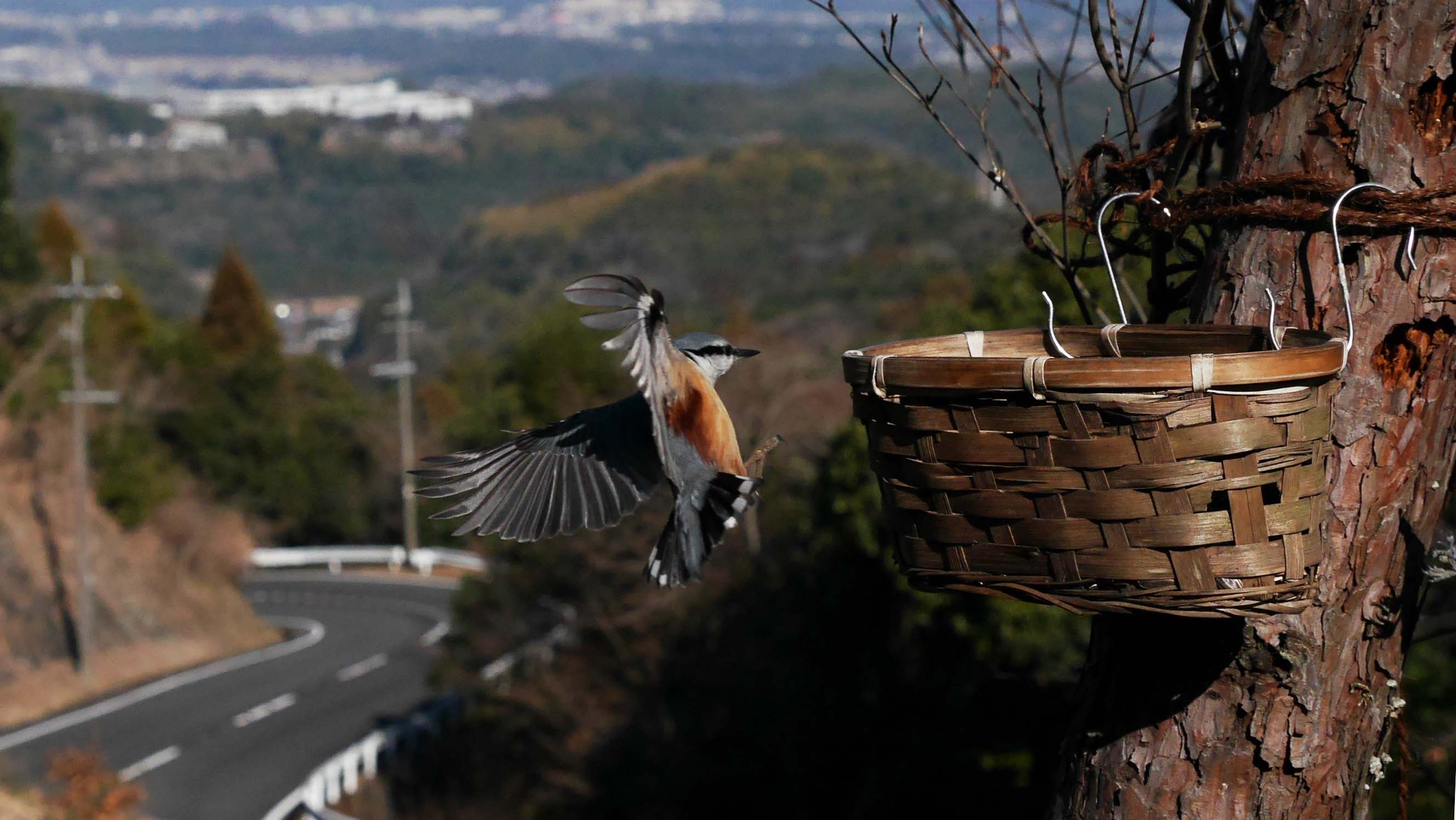 高崎山をバックに飛び去り
