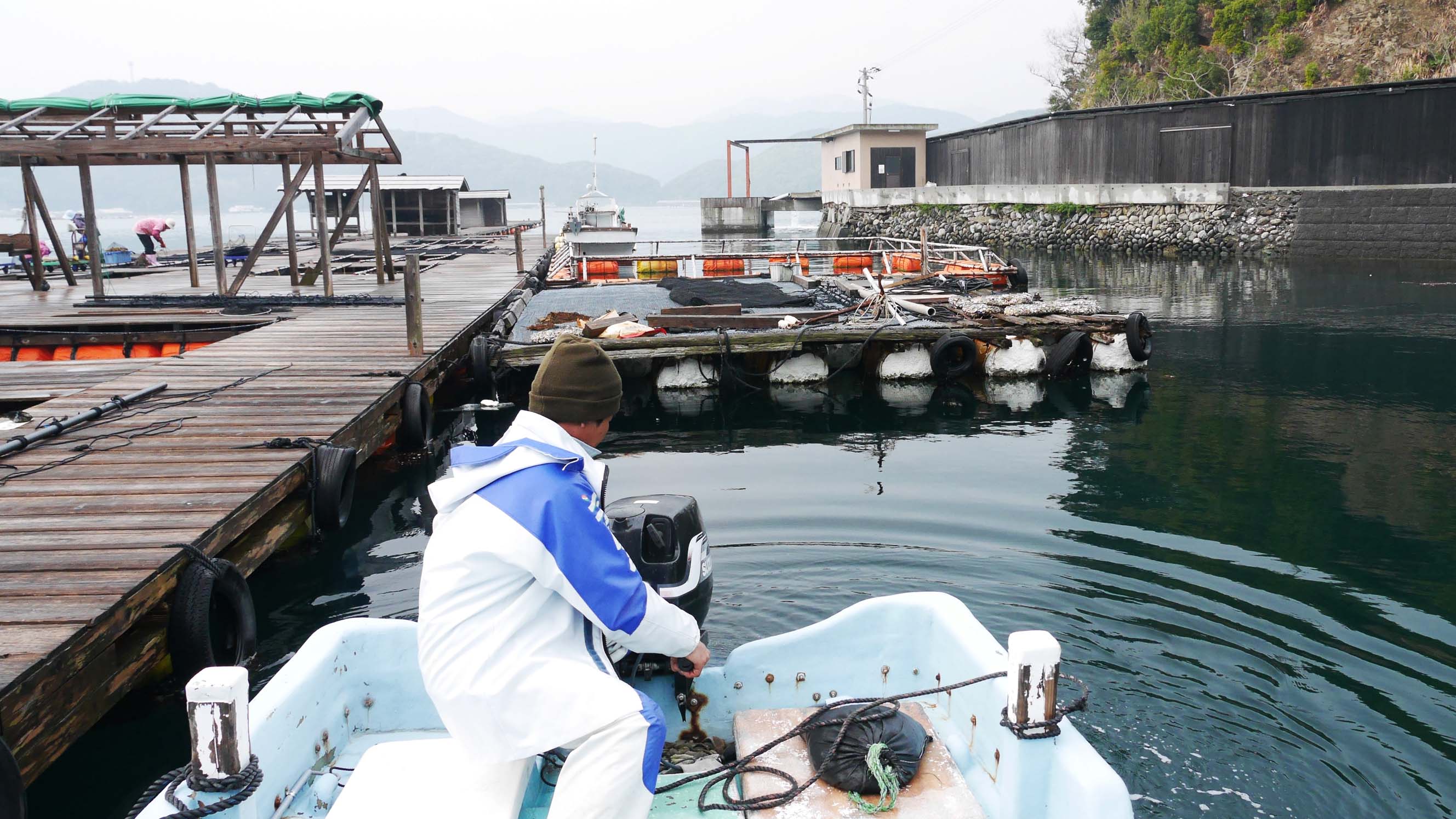 沖のイカダです。今回は小屋からの竿出し