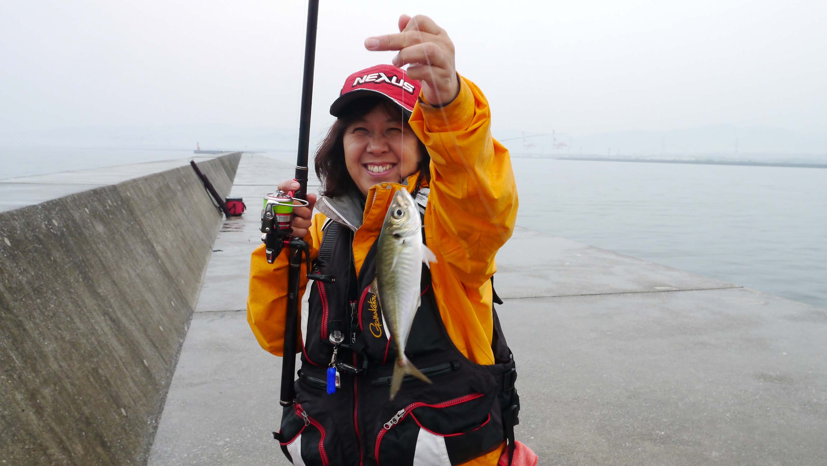 状況として、新波止で前日からの夜釣りのお客さんのクーラーは重くて、釣果を聞くと23~25㎝級のアジが良く釣れたとの事。私たちがその後に入ったのですが23㎝級も釣れたものの、後はアジゴクラスになったので、やはり型は夜釣りに分があると感じました。