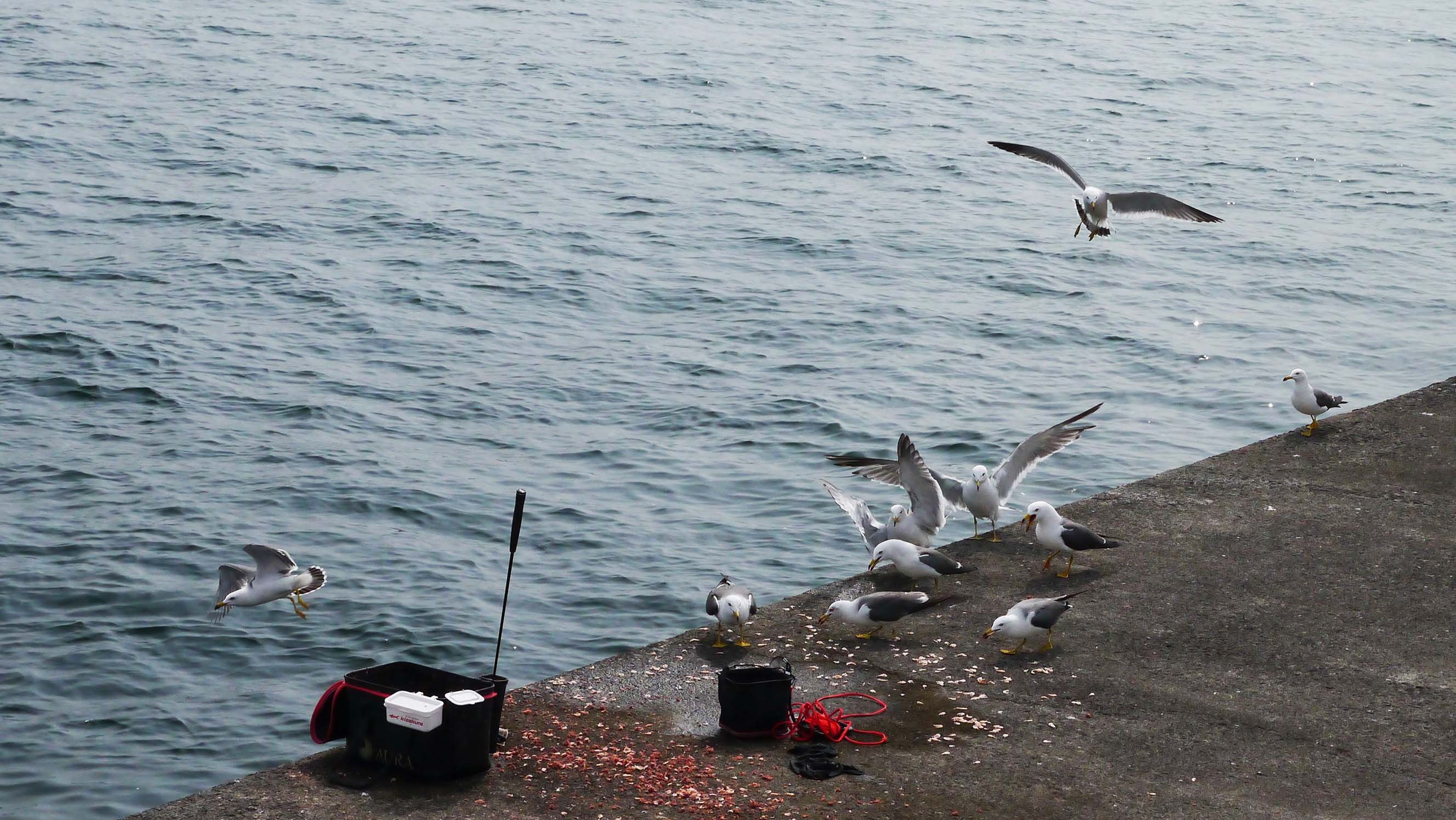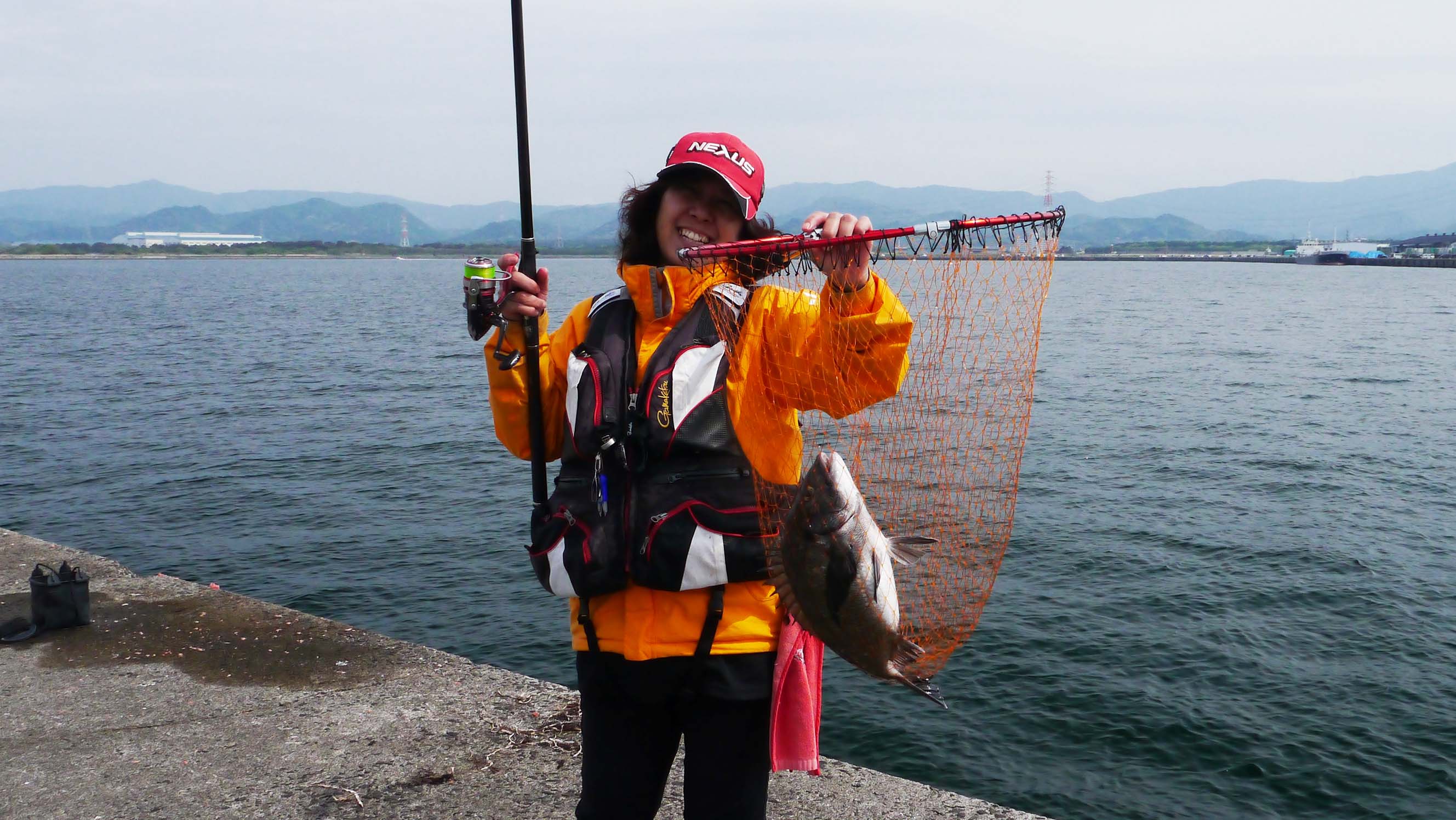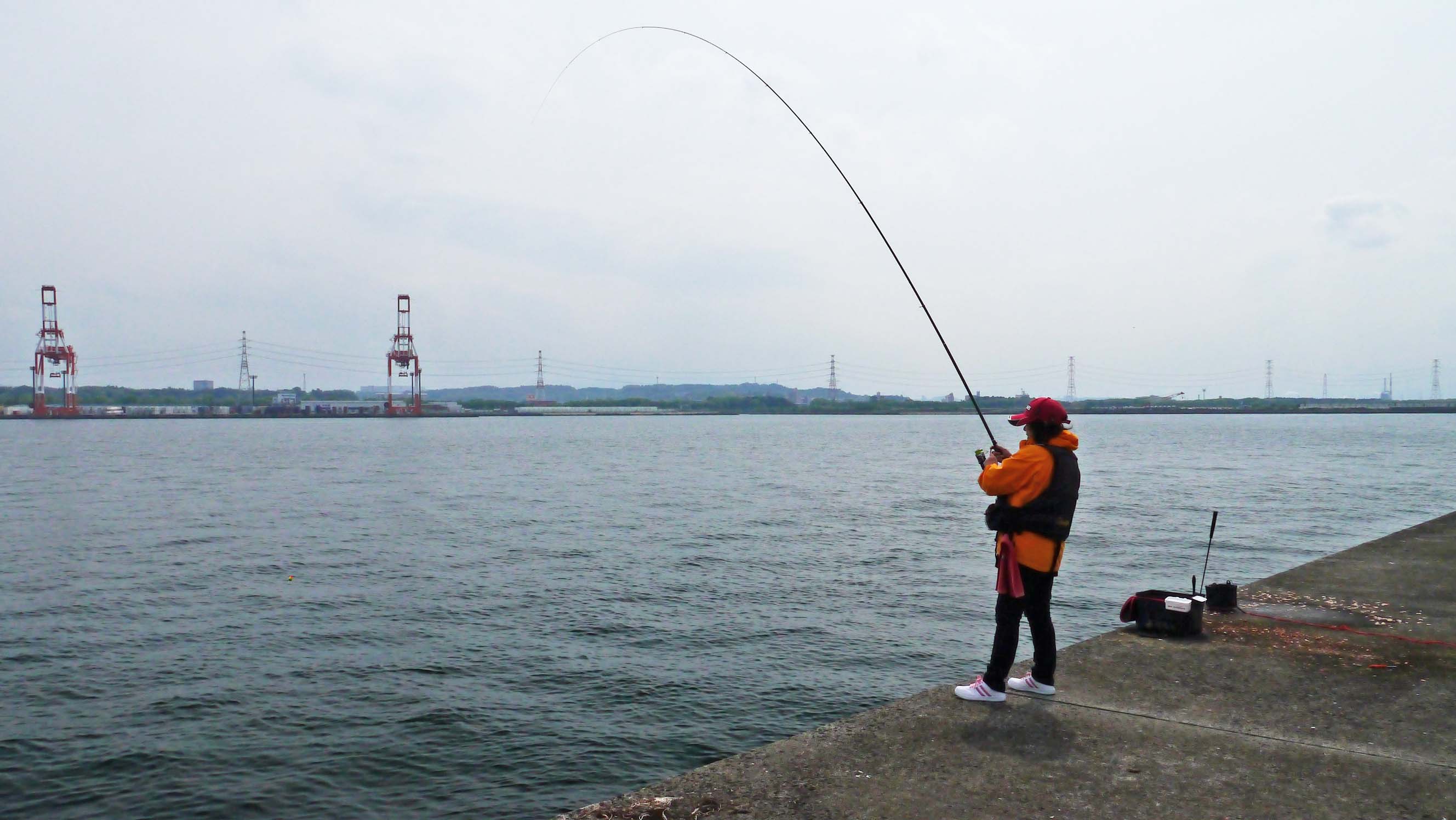向かった先は横一文字の"くの字”です。この場所なら北西風を凌げます。内向き狙いでアジゴがポツポツ釣れ続けて、チヌは後藤さんの一匹だけでした。