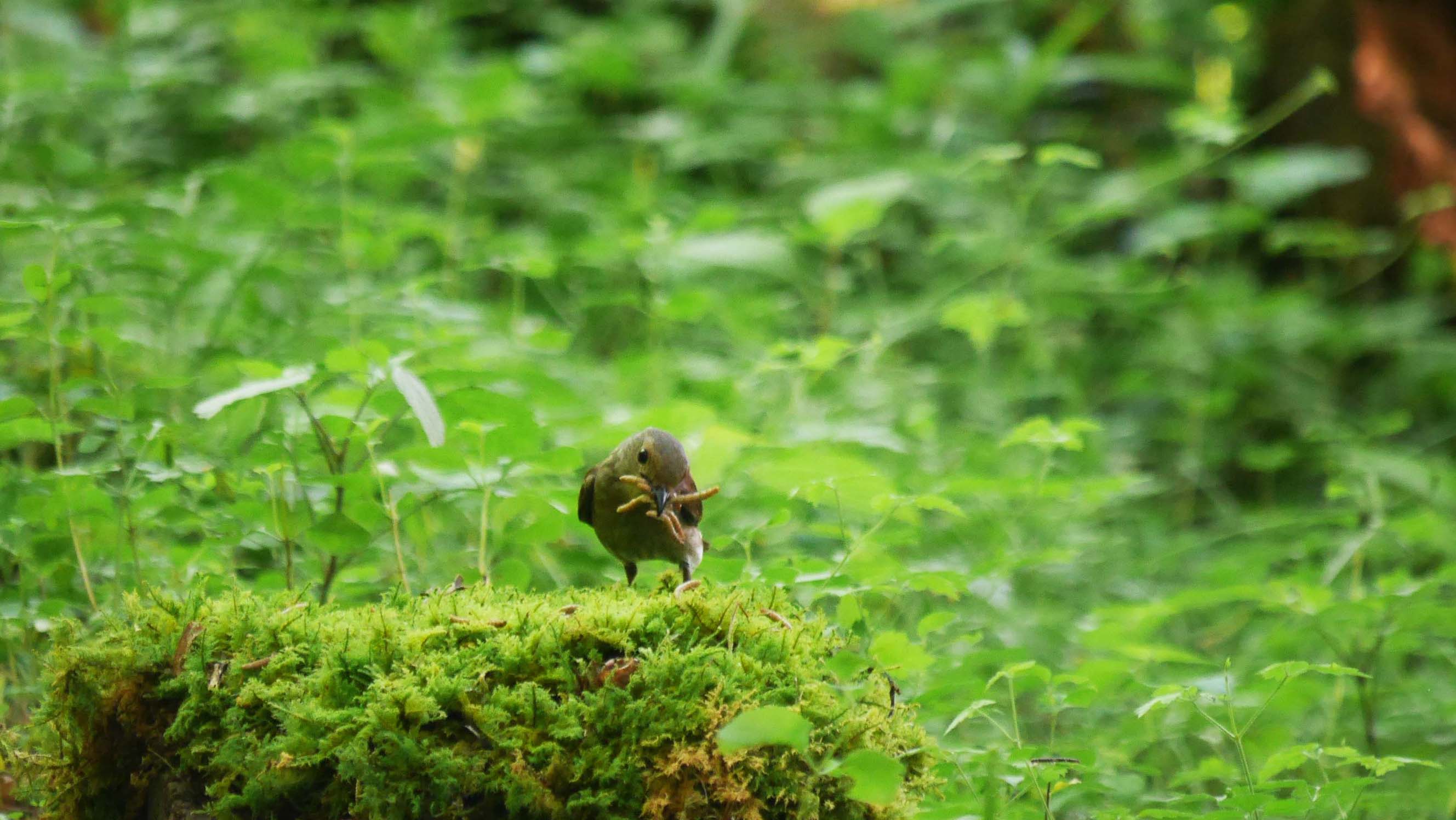 ここでは10数匹のミルワームあげますが、オオルリのメスが運んでいます
