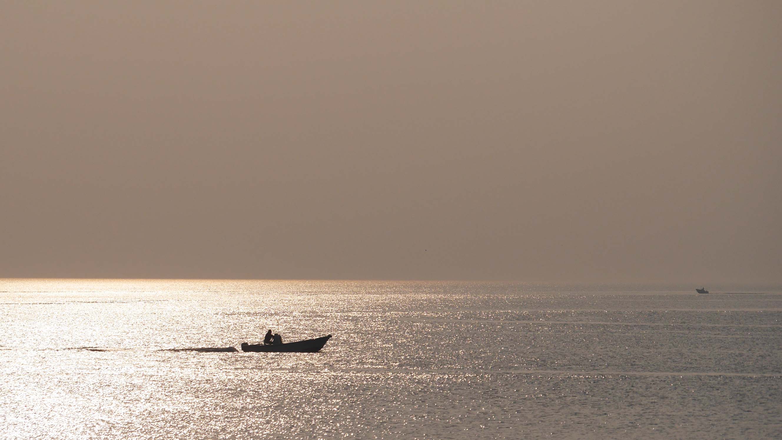黒曜石で有名な観音崎からの海と地元の漁船