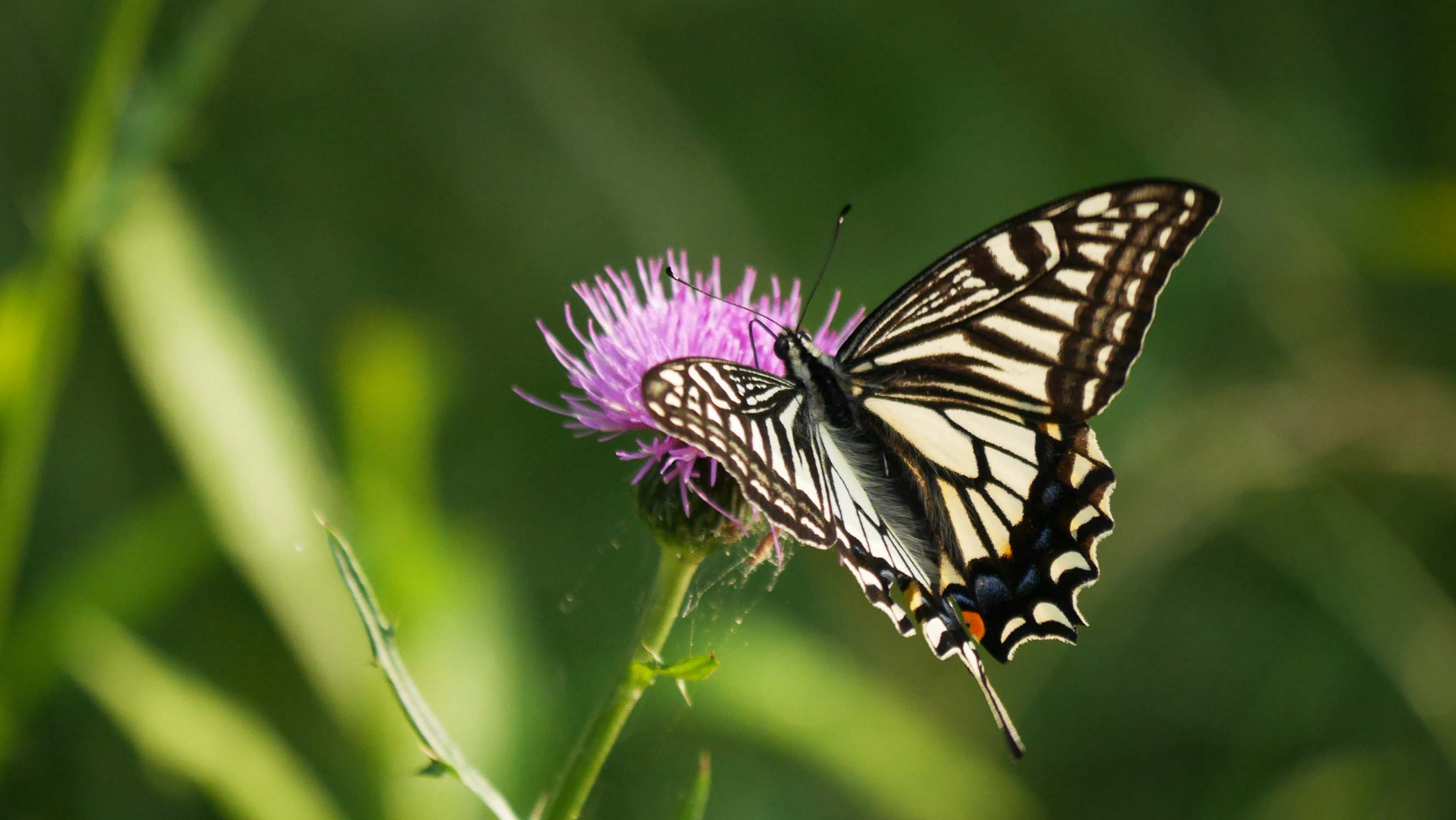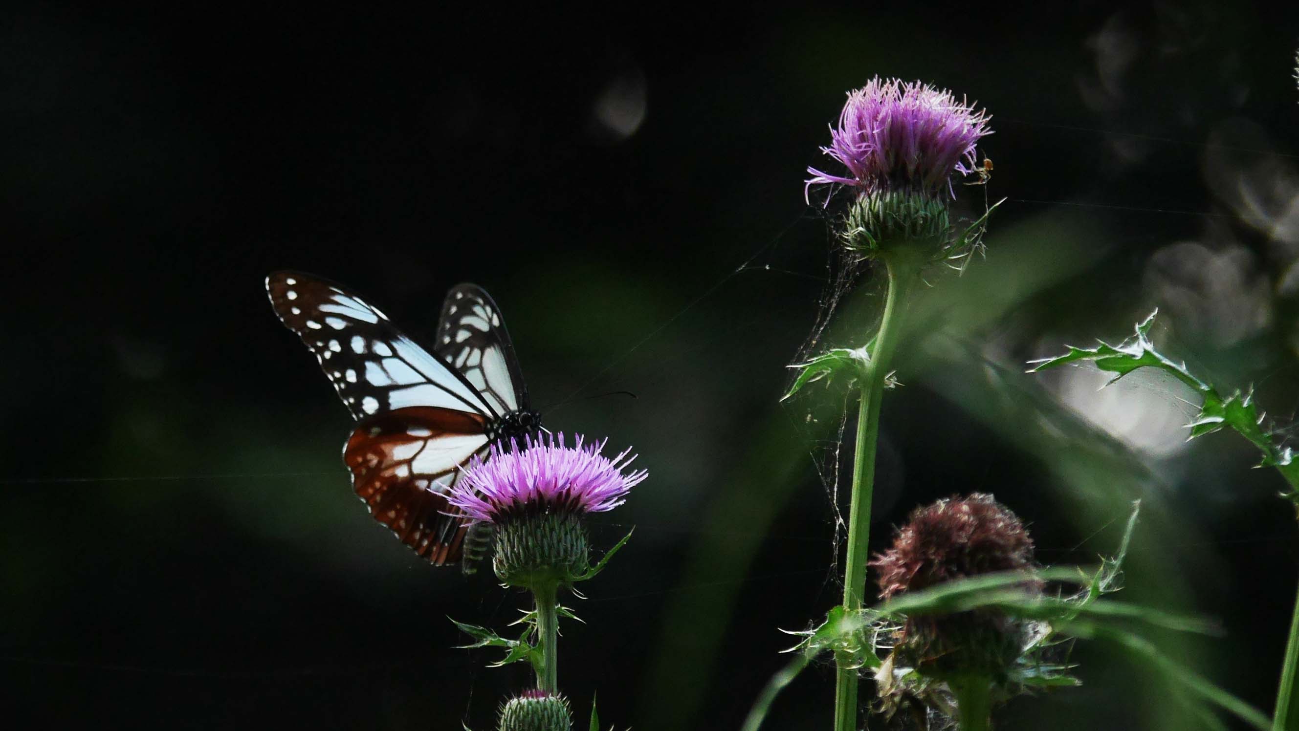 観音崎でアザミの蜜を吸うアサギマダラ