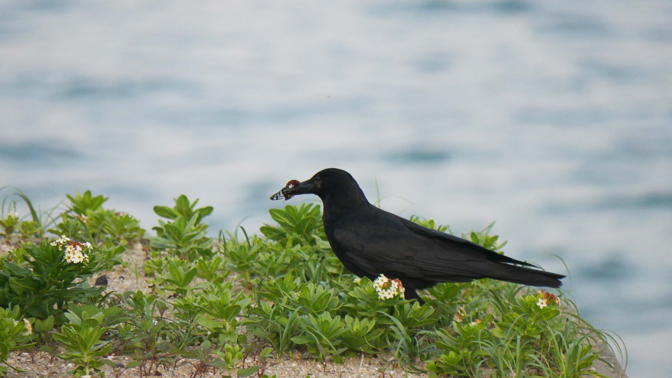 そこでアサギマダラを食べるハシボソガラス、他にイソヒヨドリも・・