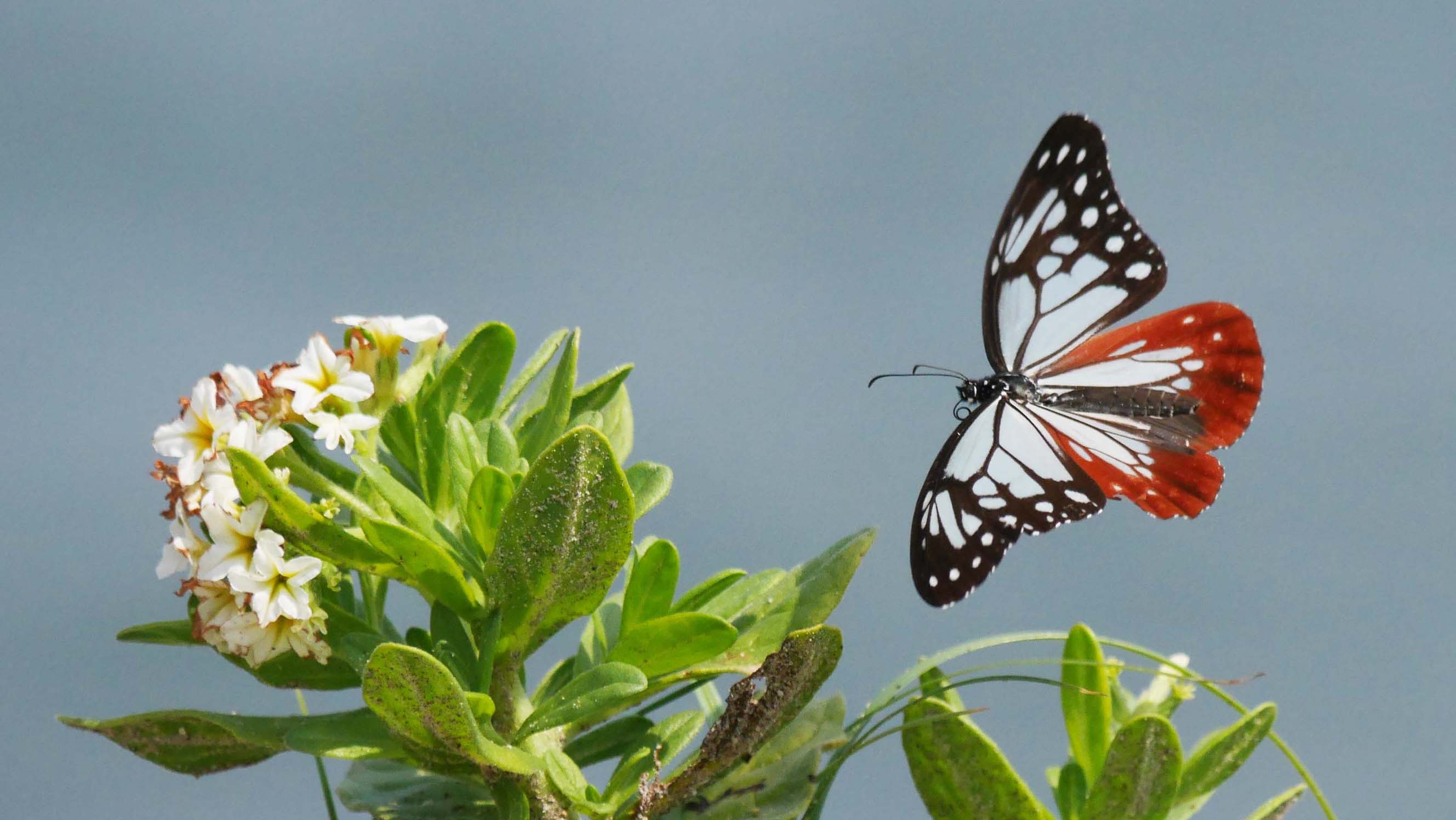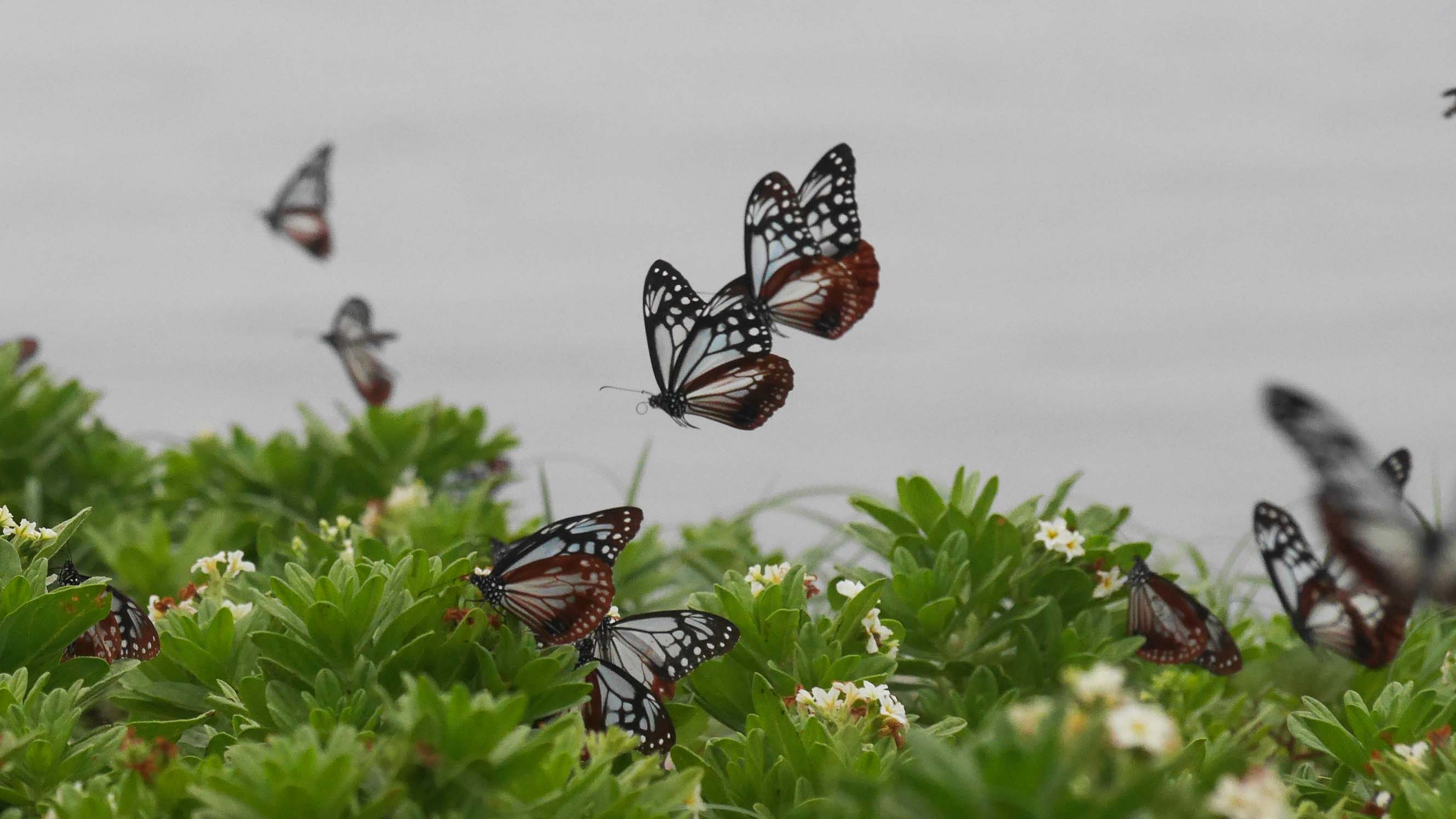 夕刻まで少数が飛んでいました。アサギマダラの活動は日の出から日の入りまで