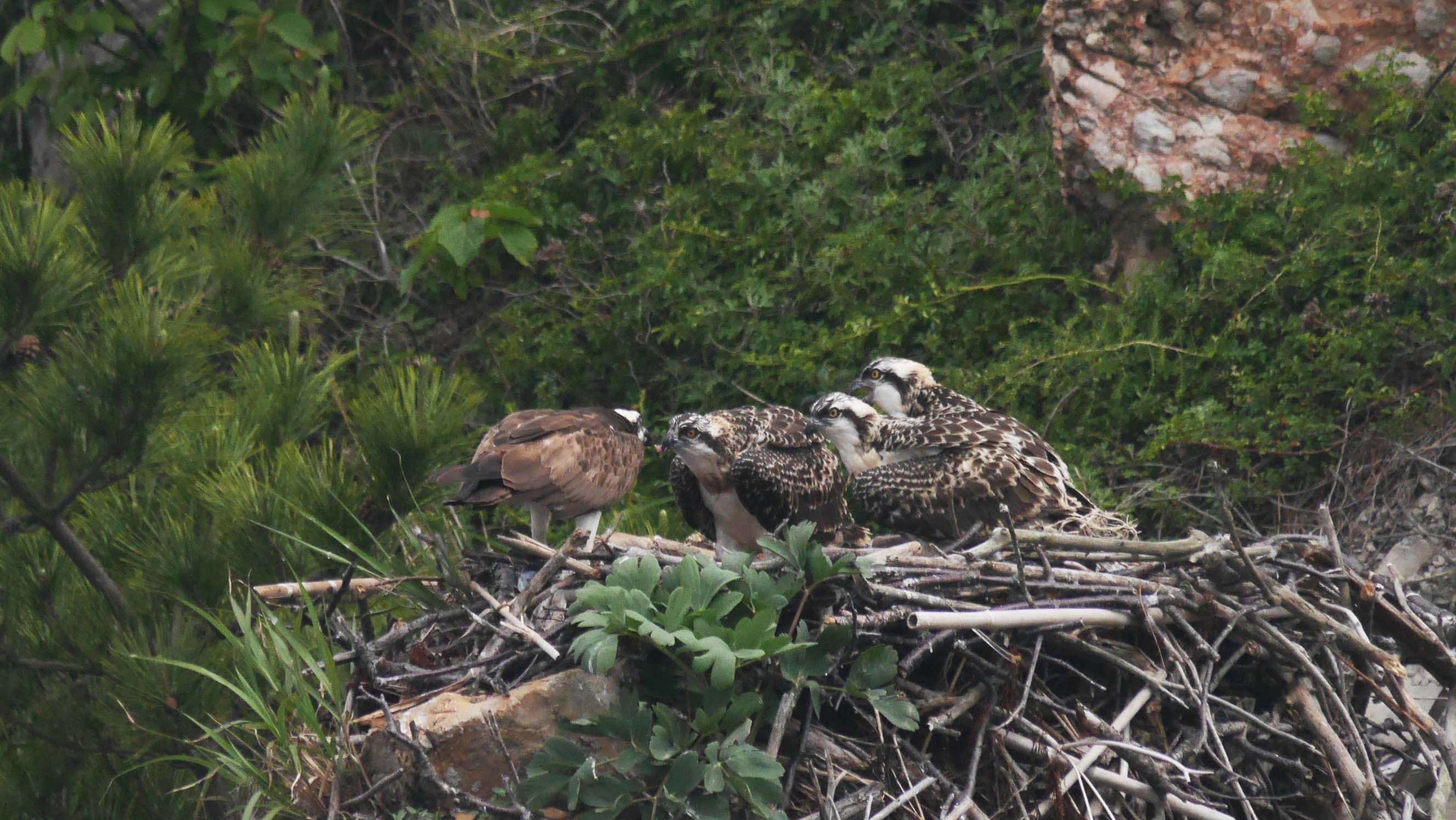 斗尺岩のミサゴが終盤の子育て中。すくすくと3羽が育っています。