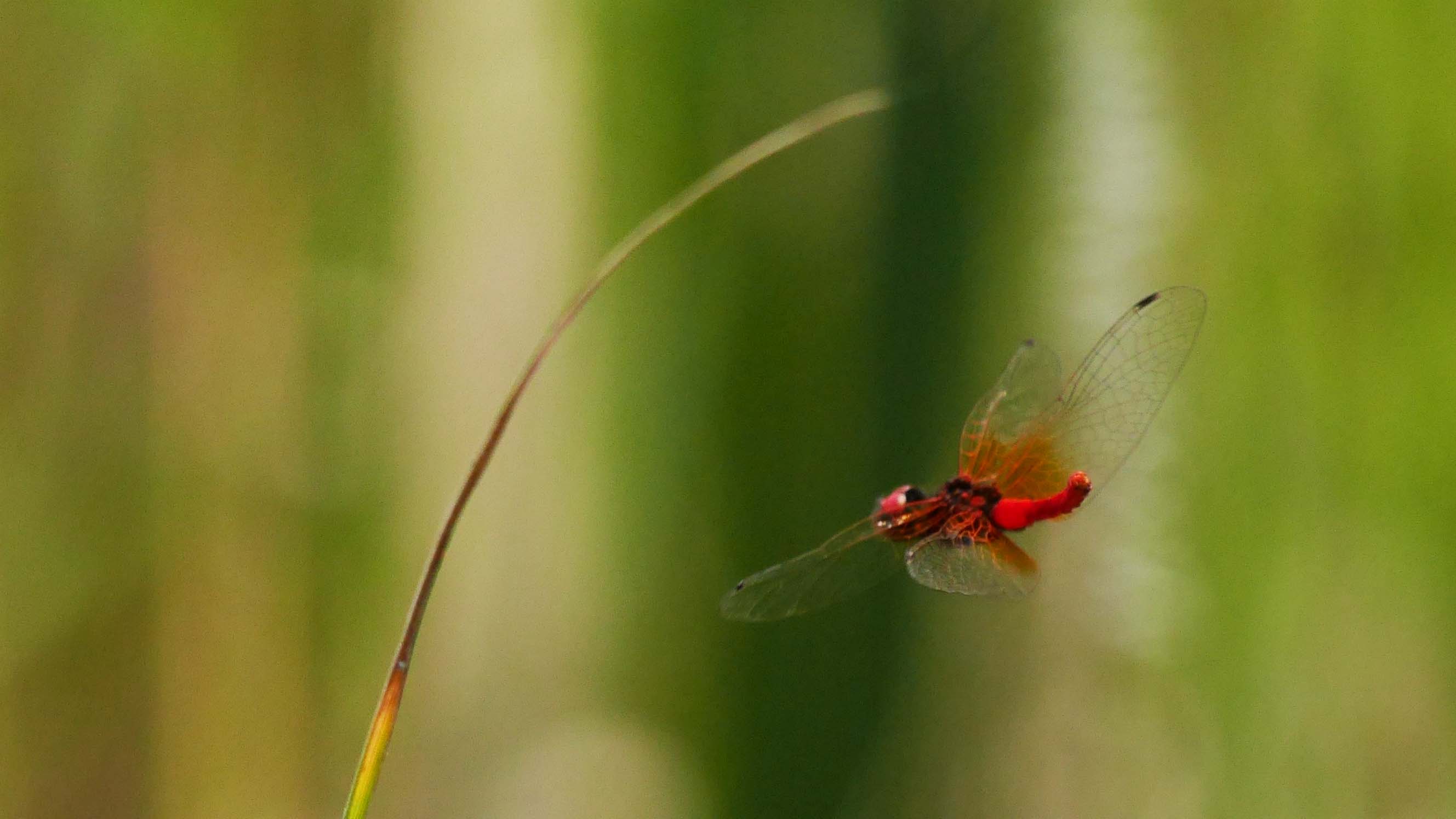 以前から撮ってみたかった小さなトンボです。
