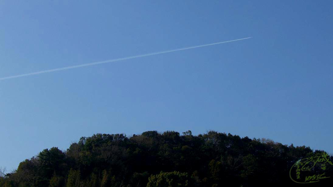 数日前の事、大分市内を走行中、飛行機雲が出来ていた。人工構造物も写りこまない。・・・シャッターチャンス