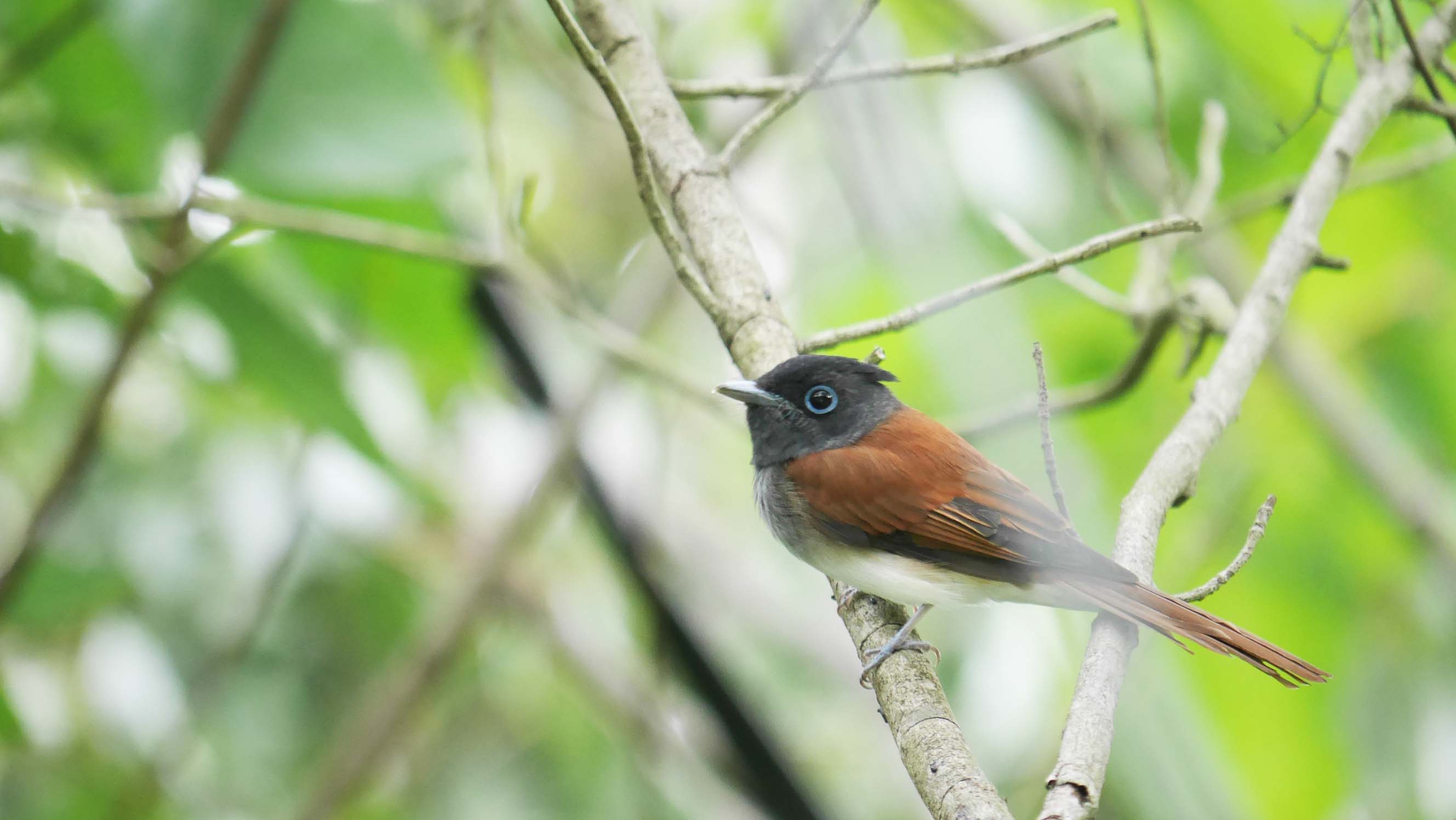 一昨日のサンコウチョウをメスとして載せたけど、比較してオス若に訂正。