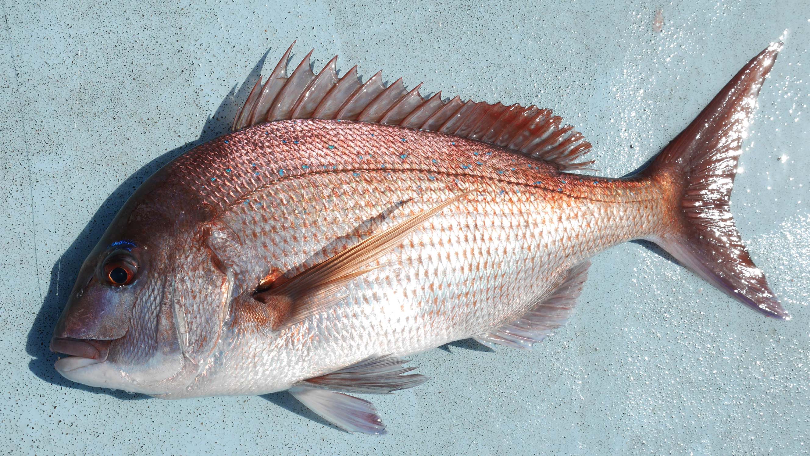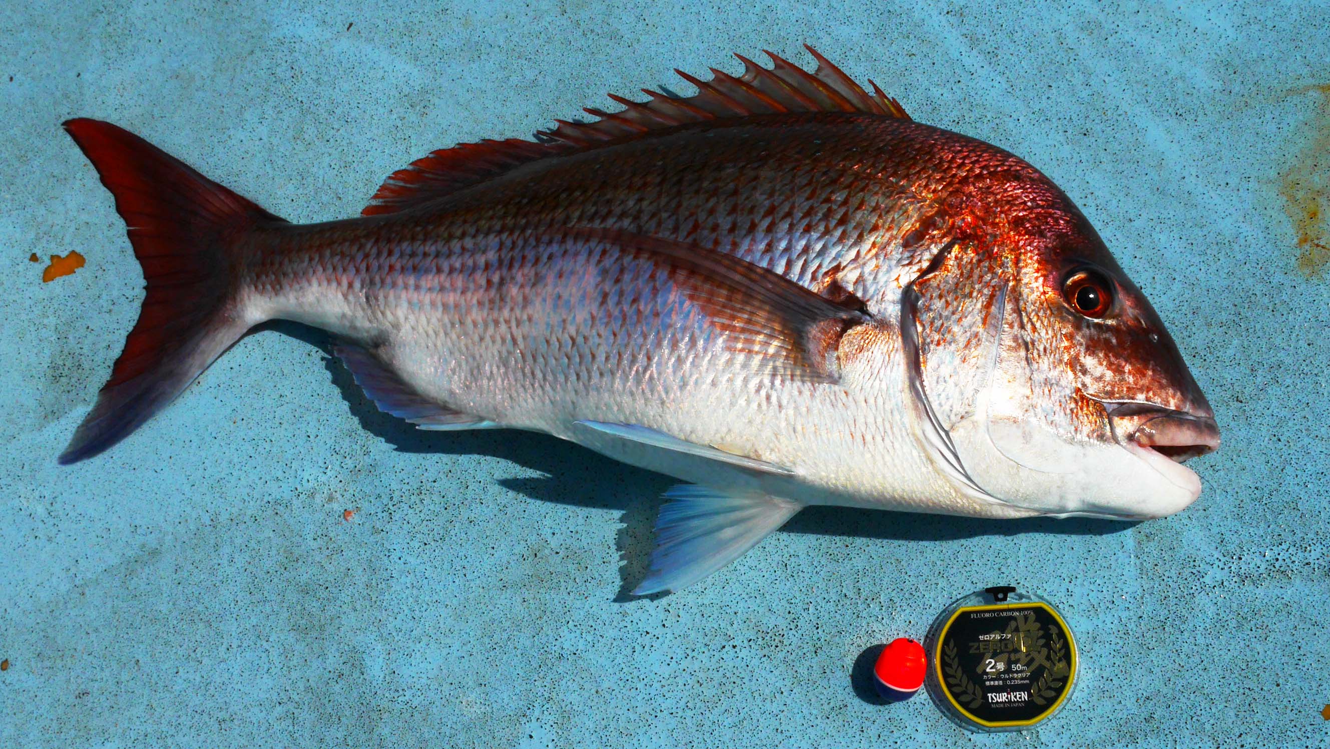 8時52分、第一投で仕留めたマダイ