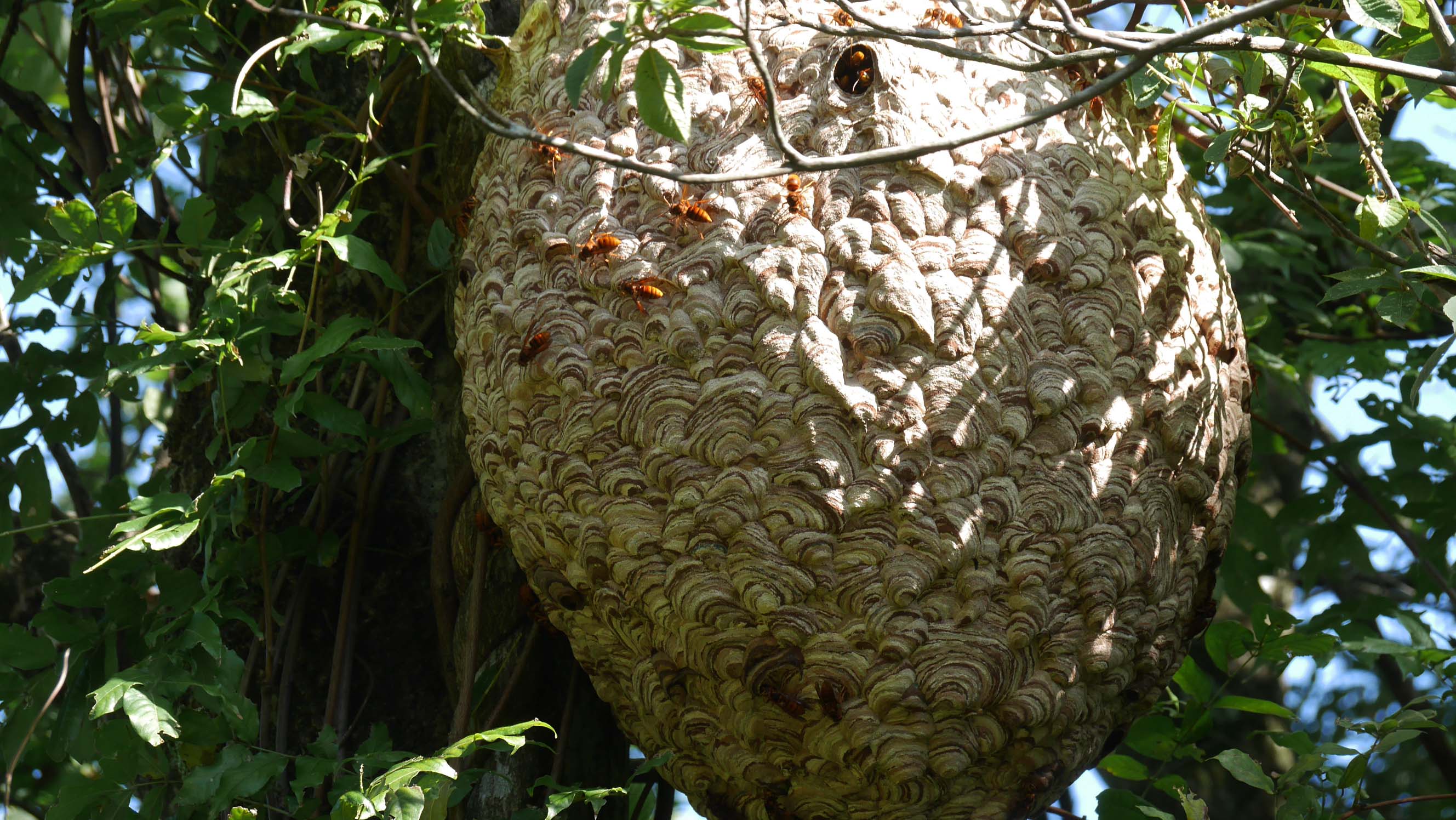 きょろきよろすると、直ぐ横の木の幹に大きな巣がありました。
