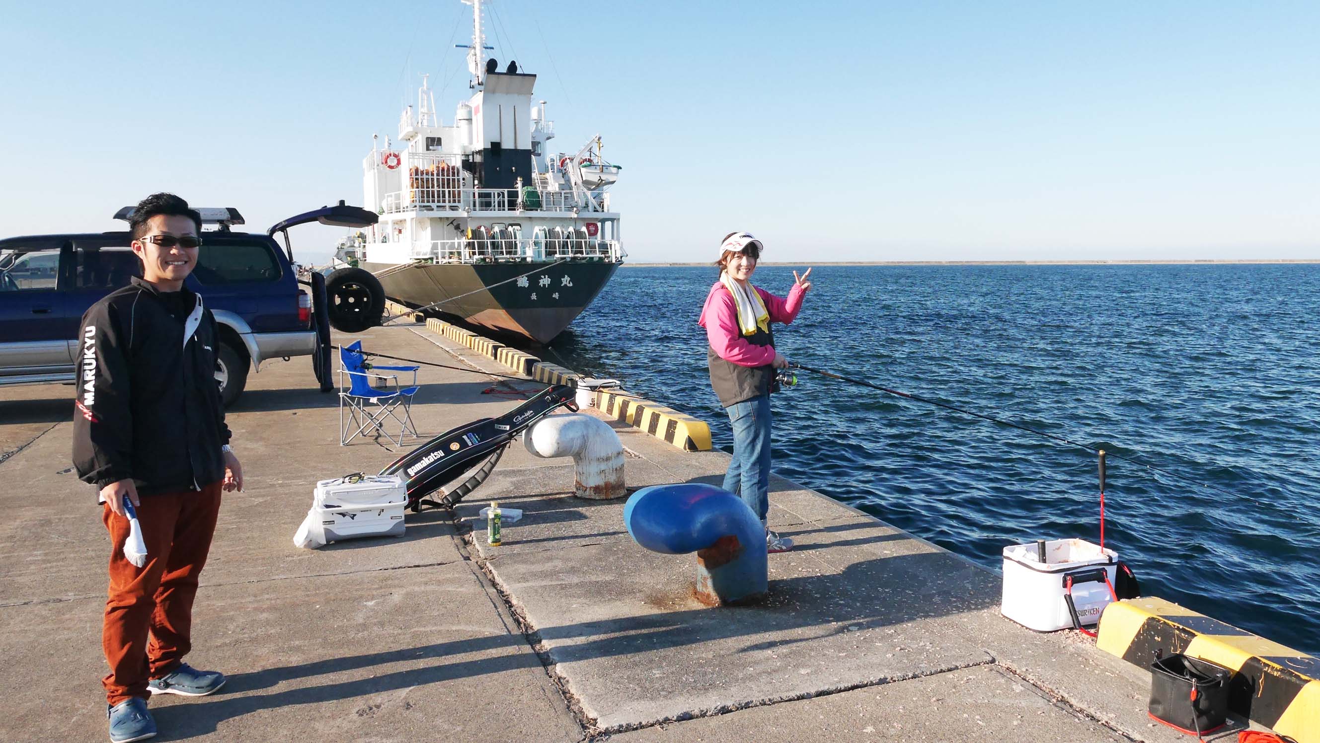 そんな成長した彼女と、夏季釣り講座で一緒に司会進行を務めてくれた藪田君を交え、大在公共埠頭へチヌを狙って18日の土曜日に釣行したのです。