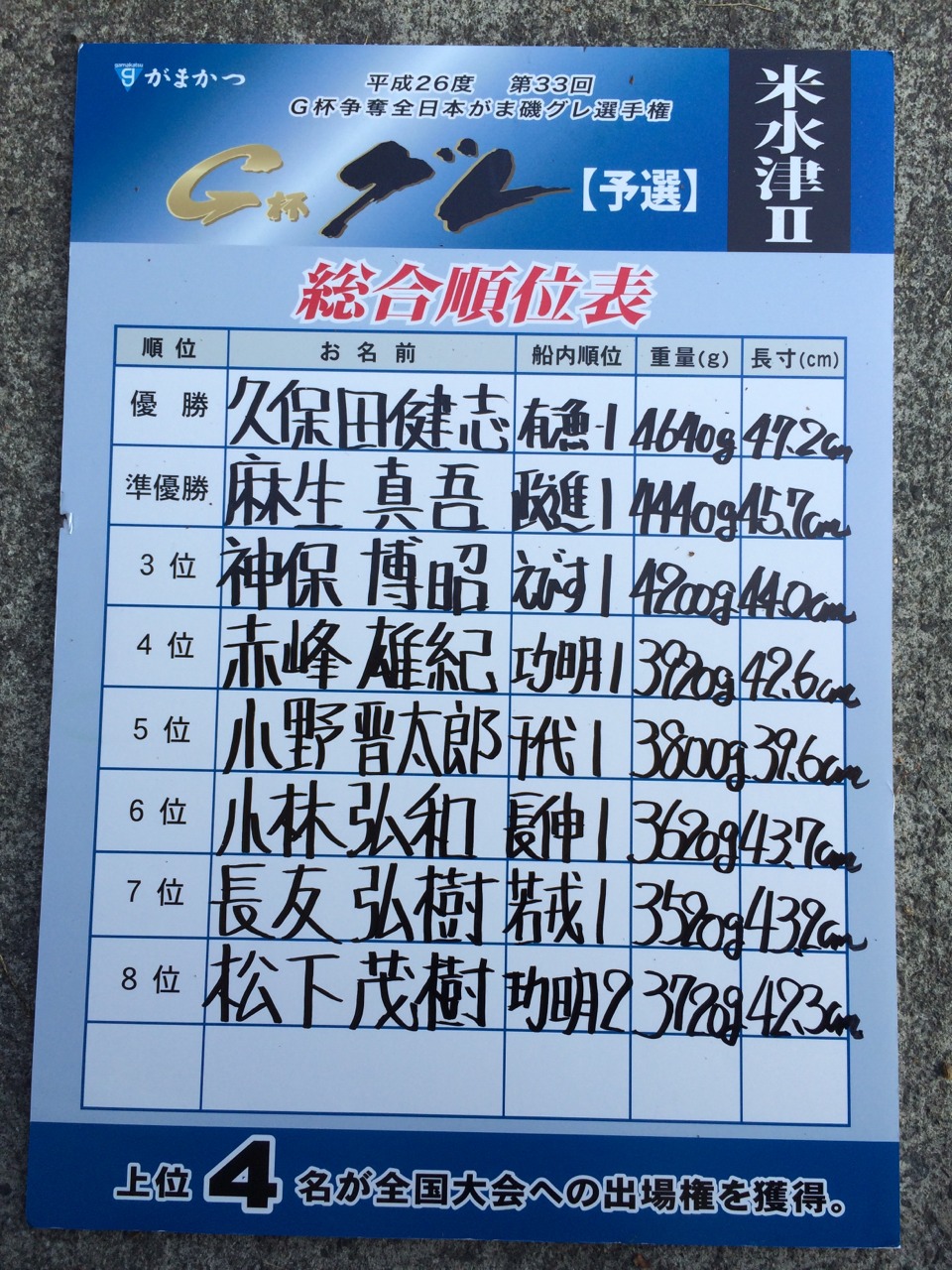 上位4名の方々が全国の切符を手に入れました