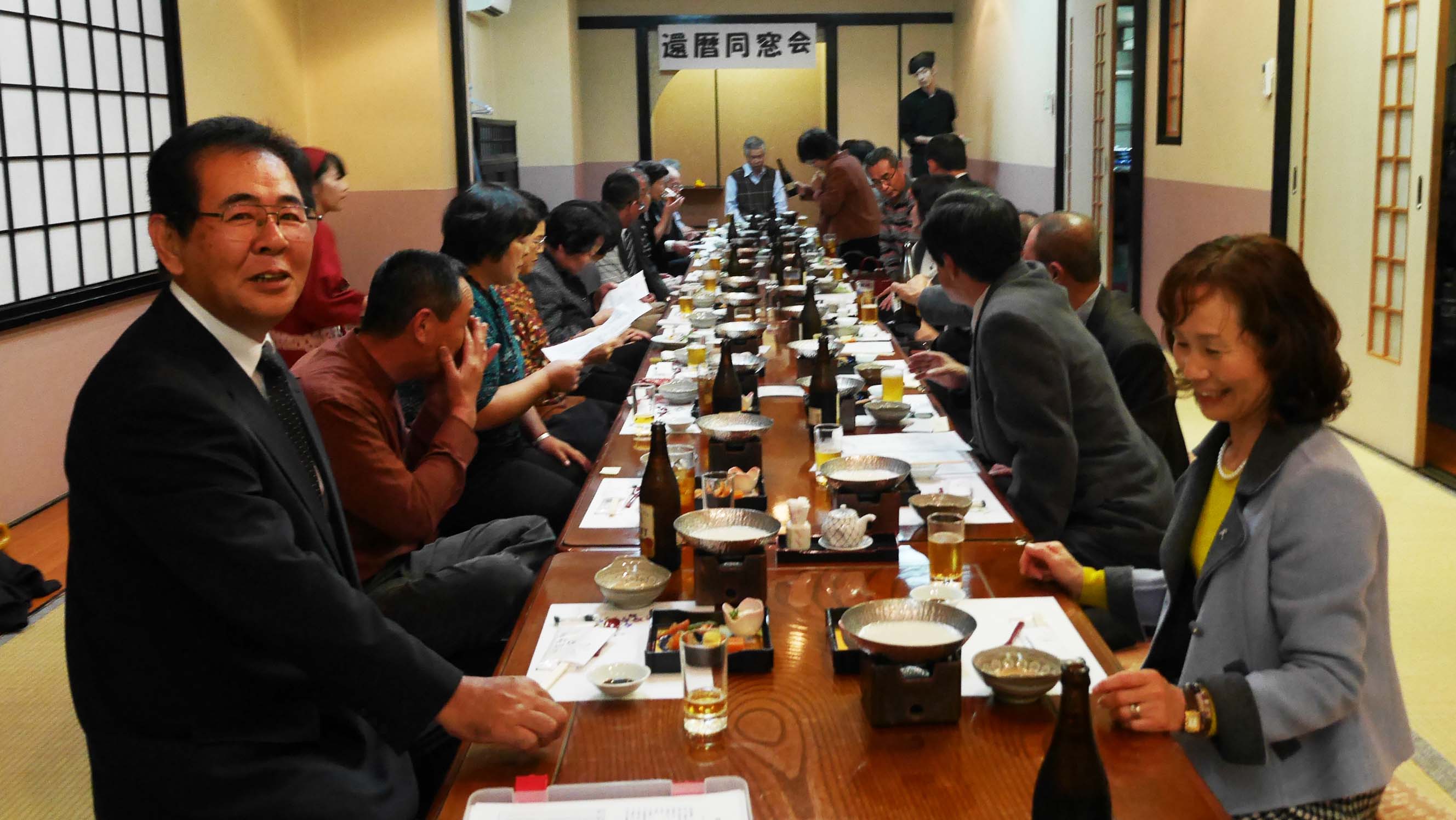 残念ながら物故者が4名ほどでており、会の始まる前に全員で黙とうを捧げました。60年という歳月は思い返すと短いもの。皆さんいろんな経験を積みながらシワを刻み、白髪を増やしてきている感じです。
