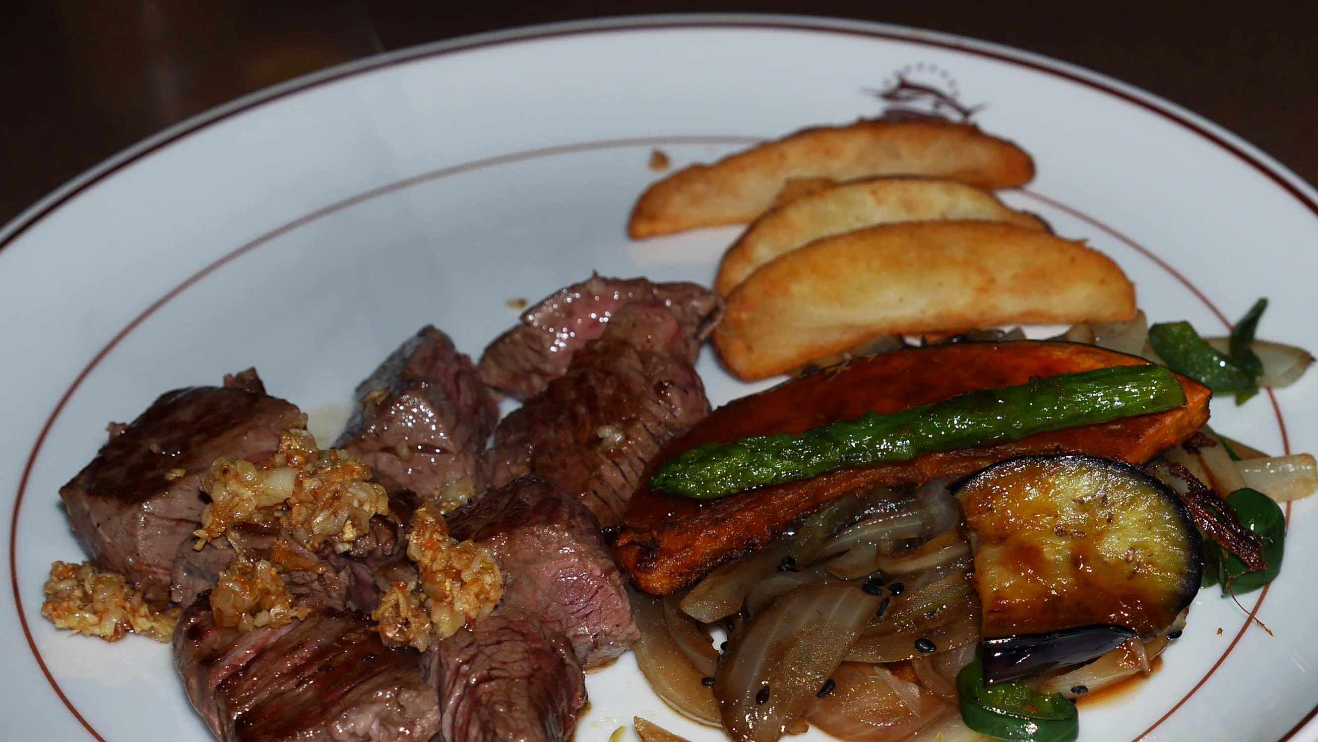 おいさん一人・女性二人での注文は、ヒレ400g・ロース200gを選んだフルコースでしたが、前菜のタタキから最後の焼き飯?ソフトシャーベットなどまで完食です。