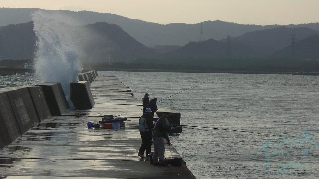 昨日の朝は北の風がまだ強く、北西から北東の波を食い止める一文字の防波堤に次々と波が押し寄せていた。強い風と北東の波に耐えられる釣り場は5本の内、縦一文字と横一文字の2本だけ・・・