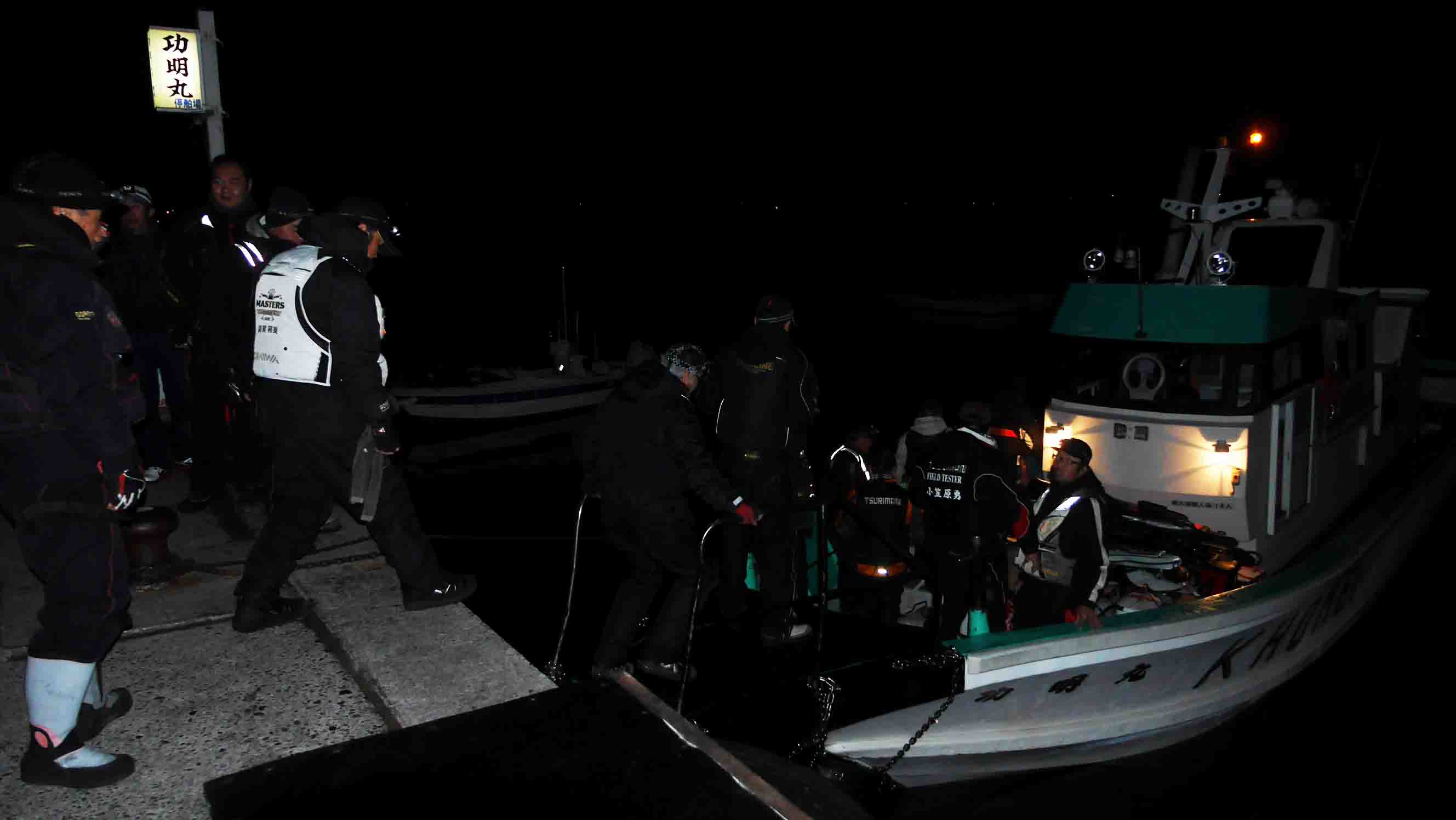 5時出港は辛い。オガライトで暖をとったり暖かいスープを頂いたり