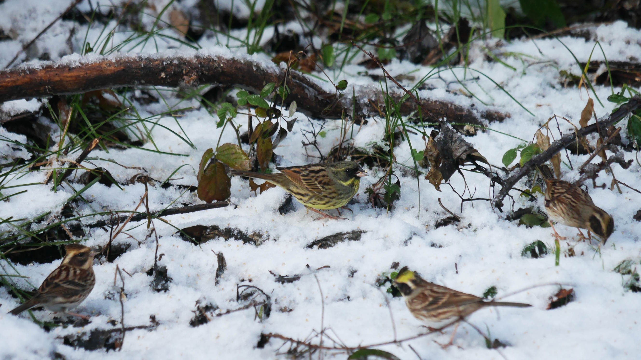 アオジのオスとミヤマホオジロのオス・メス