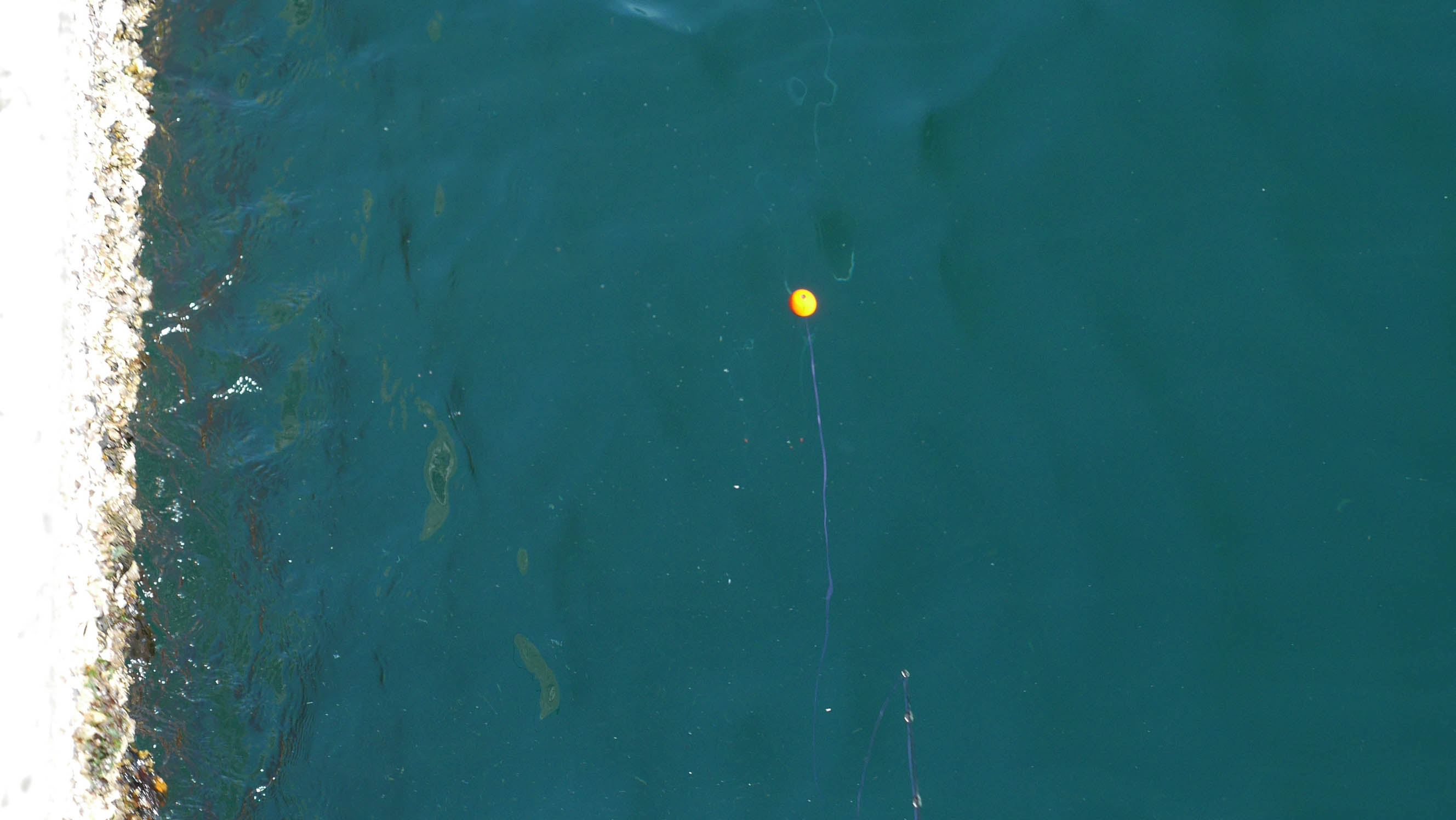こんな感じで岸壁近くを狙います。道糸は繰り出さずについて行きながら狙います