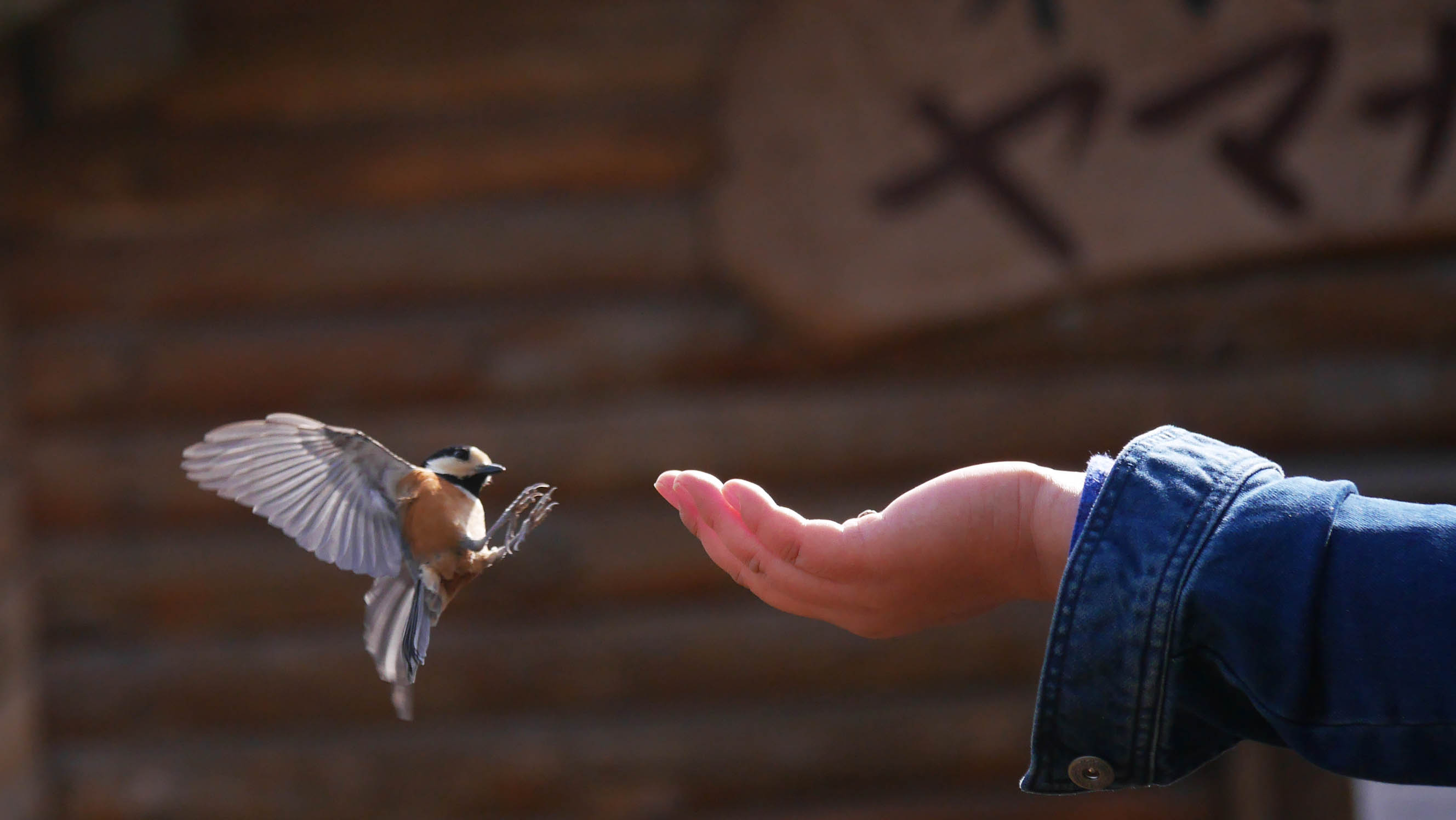 私を含めて4名もの人の傍へ舞い降り、手からエサを取るのは勇気が要ります。