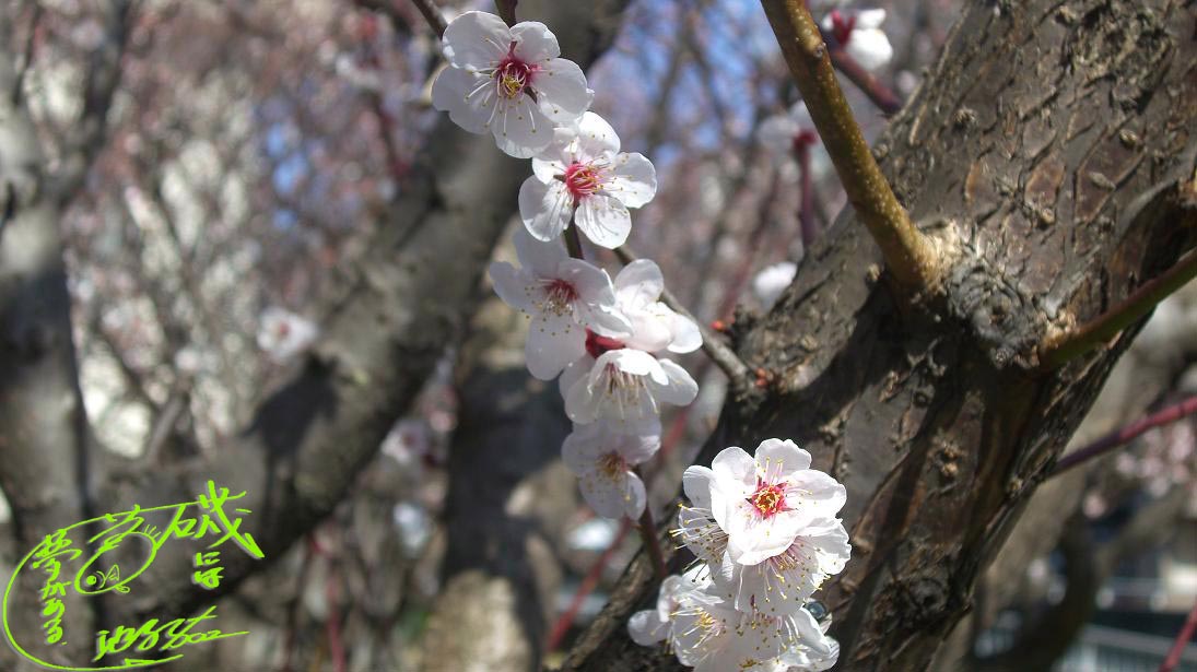 この木の幹はゴツゴツしていない。花も薄ピンクで桜に見える(^_^;)