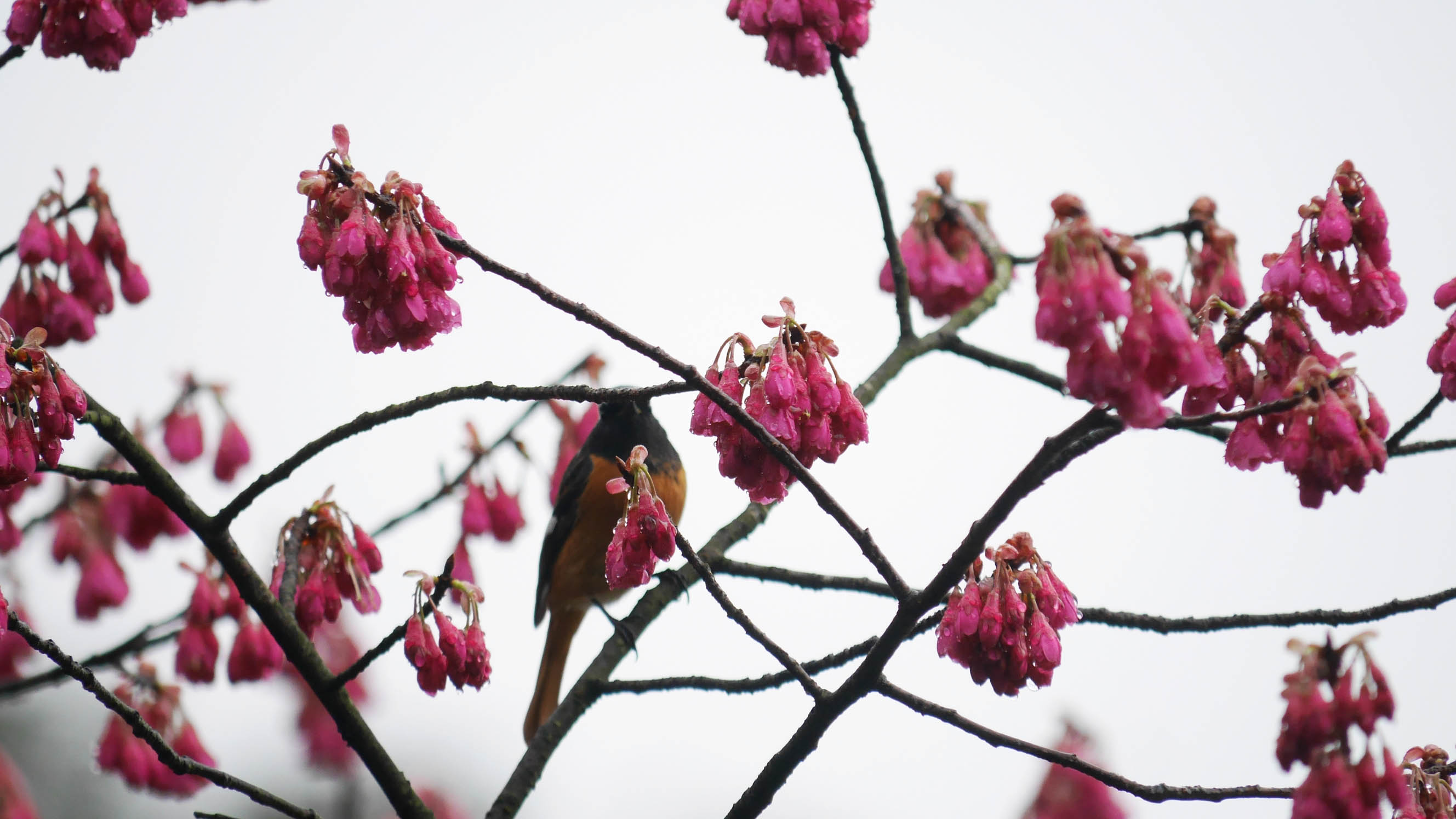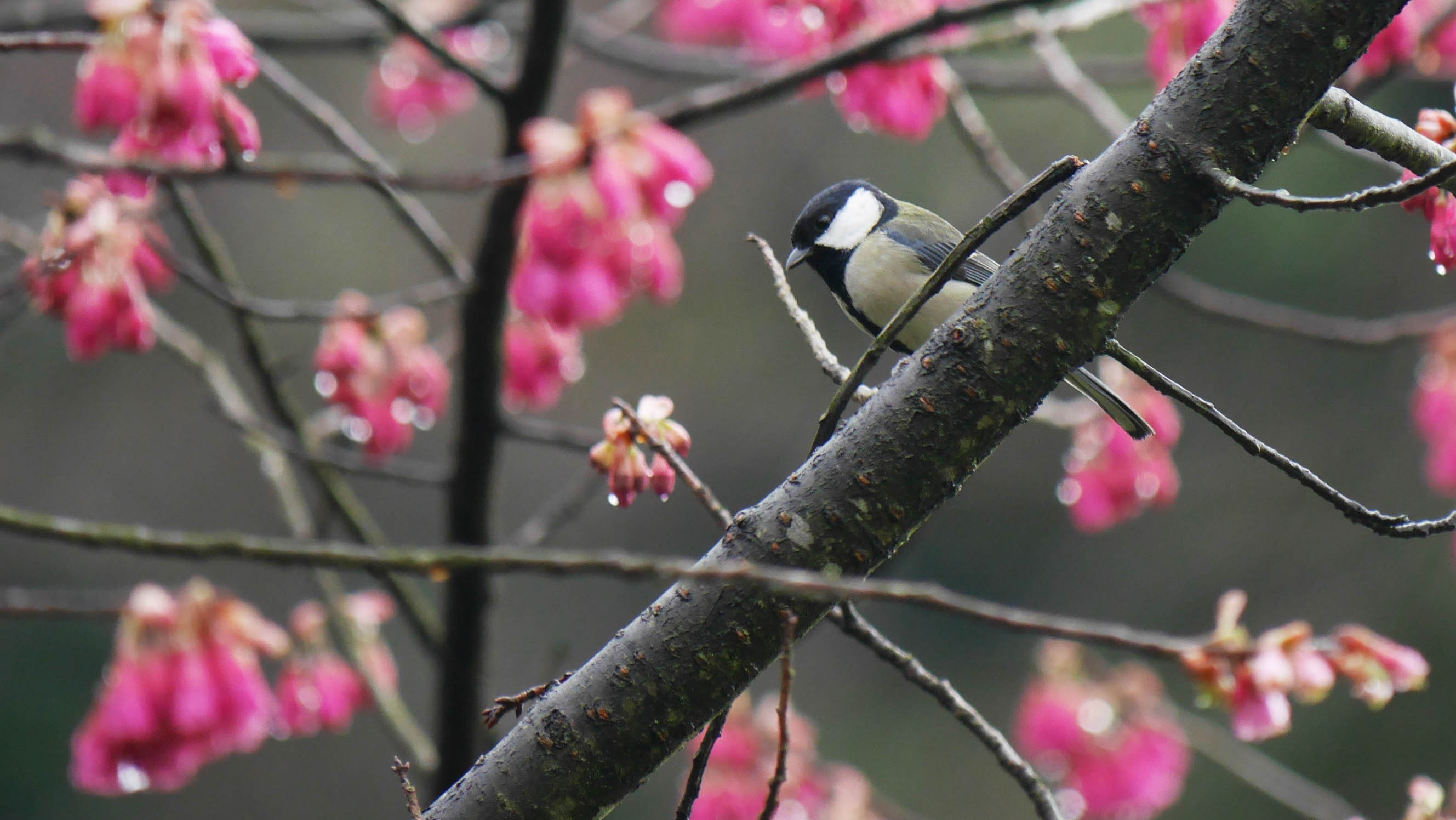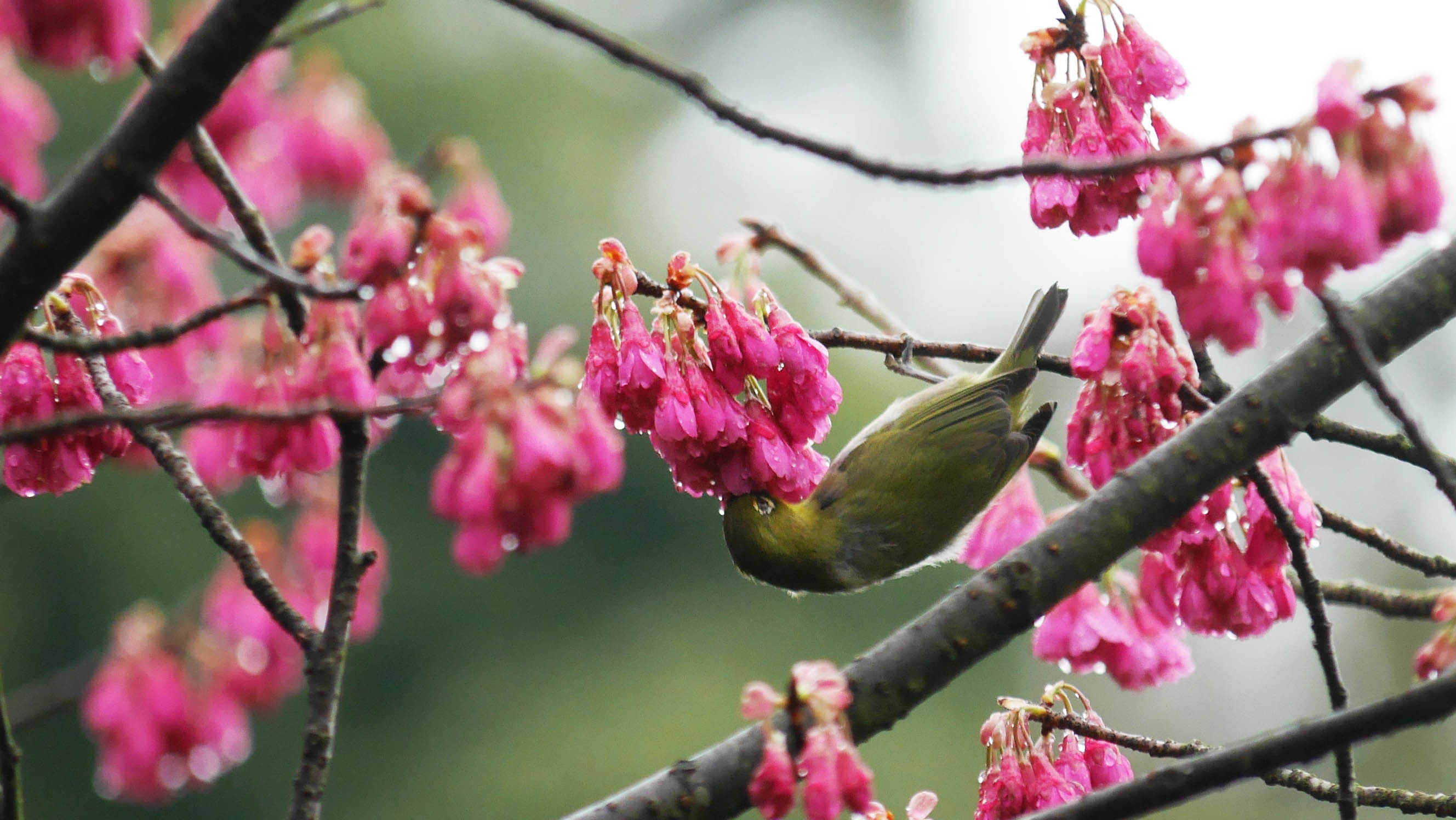 メジロが蜜を吸い始めているのを見たら開花している証拠。