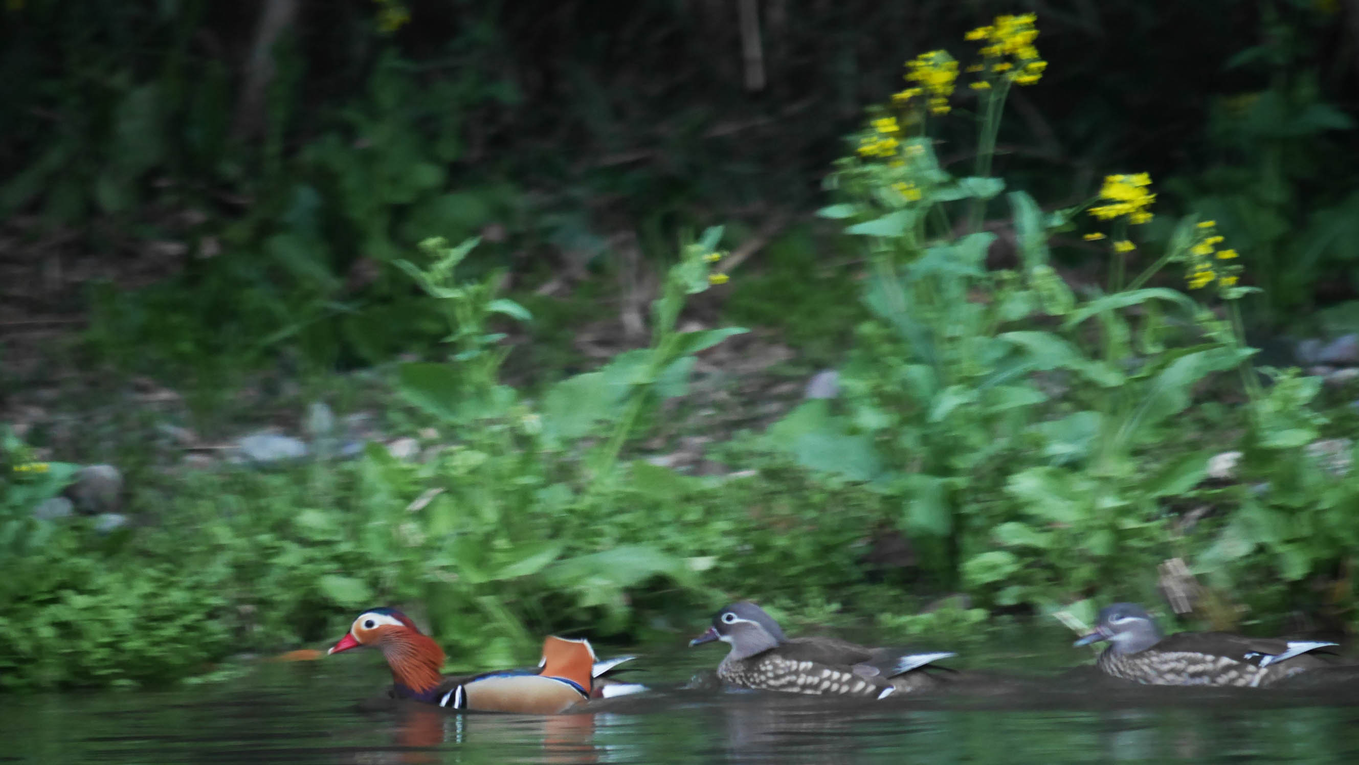 北国へ旅をしているオシドリたち、運が良ければまだまだ見る事が可能です。