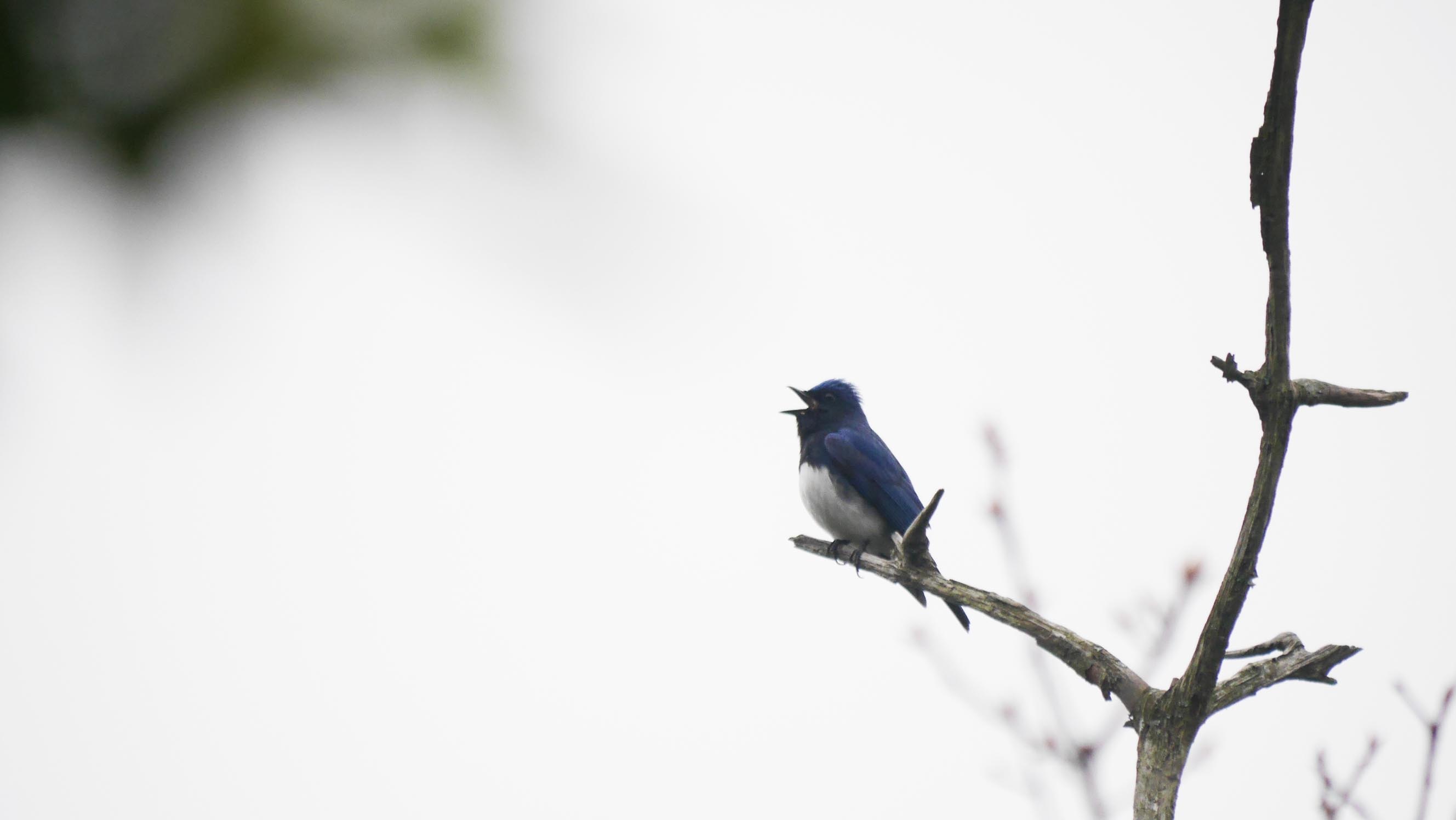 遊歩道を進んで囀っている木を特定。空抜けですが今年初のオオルリ撮影です。