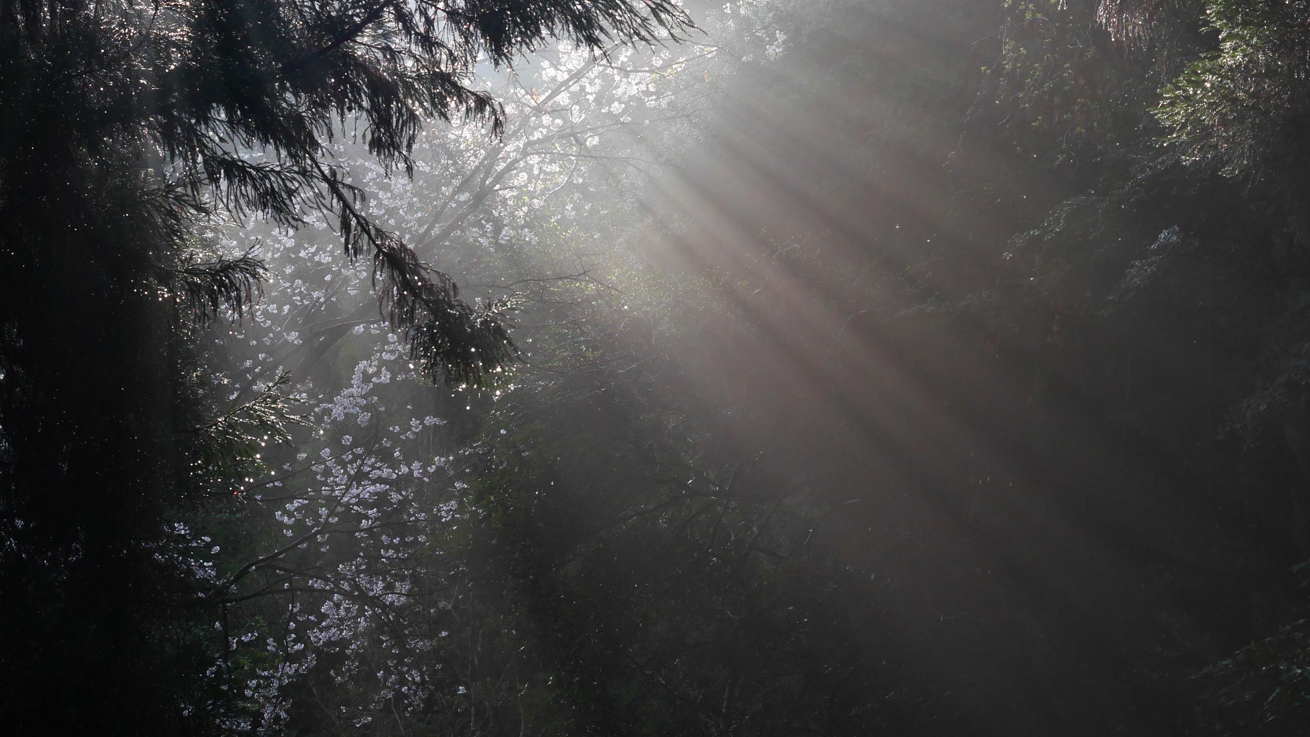 昨日の雨上がり、ソメイヨシノからの光芒