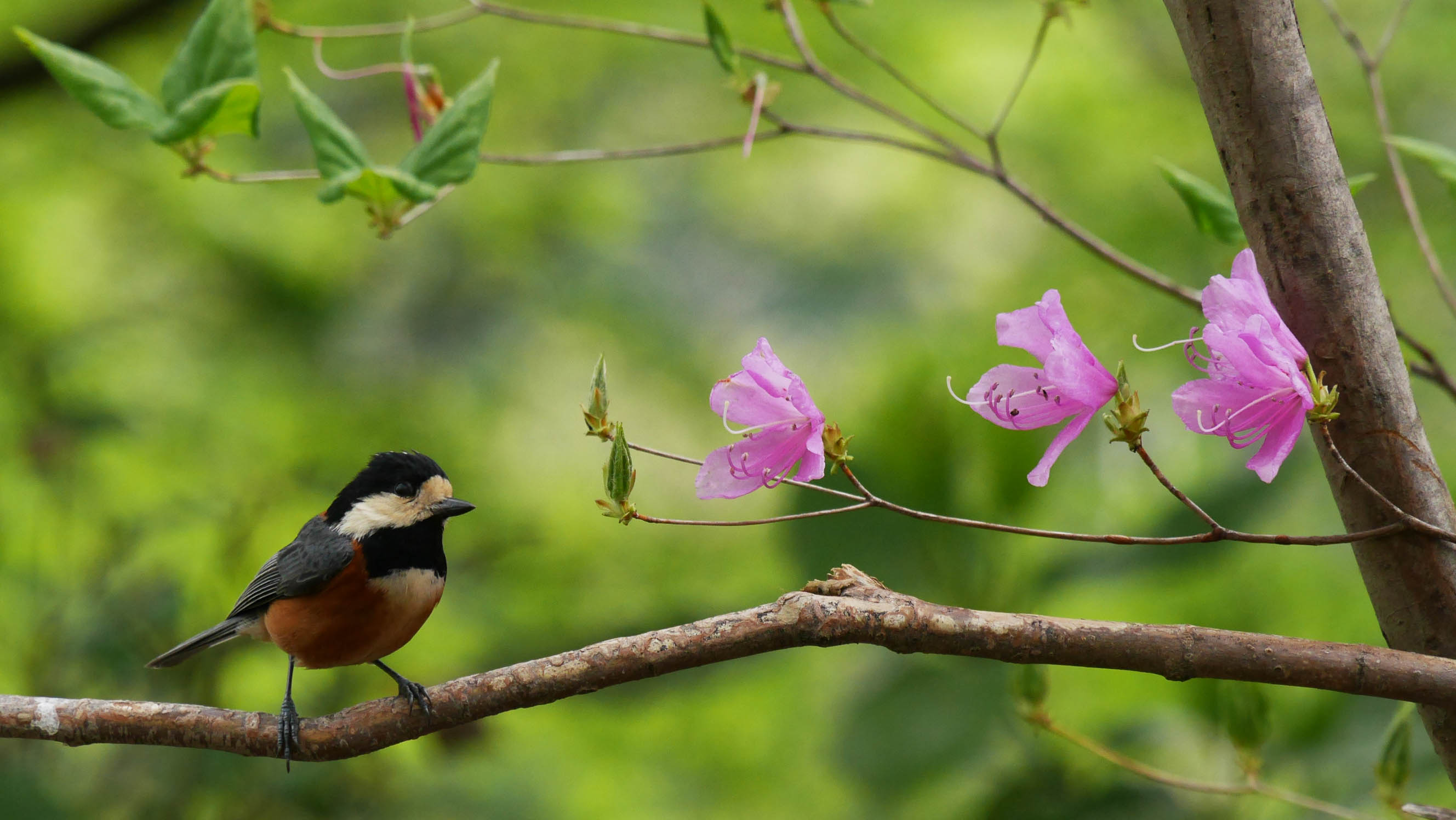 その直後、冬鳥のウソが2羽でやってきて、遅咲きの山桜の花芽を啄みはじめました。付近ではクロツグミと思われる地鳴きが度々・・・番いになったと思われます。