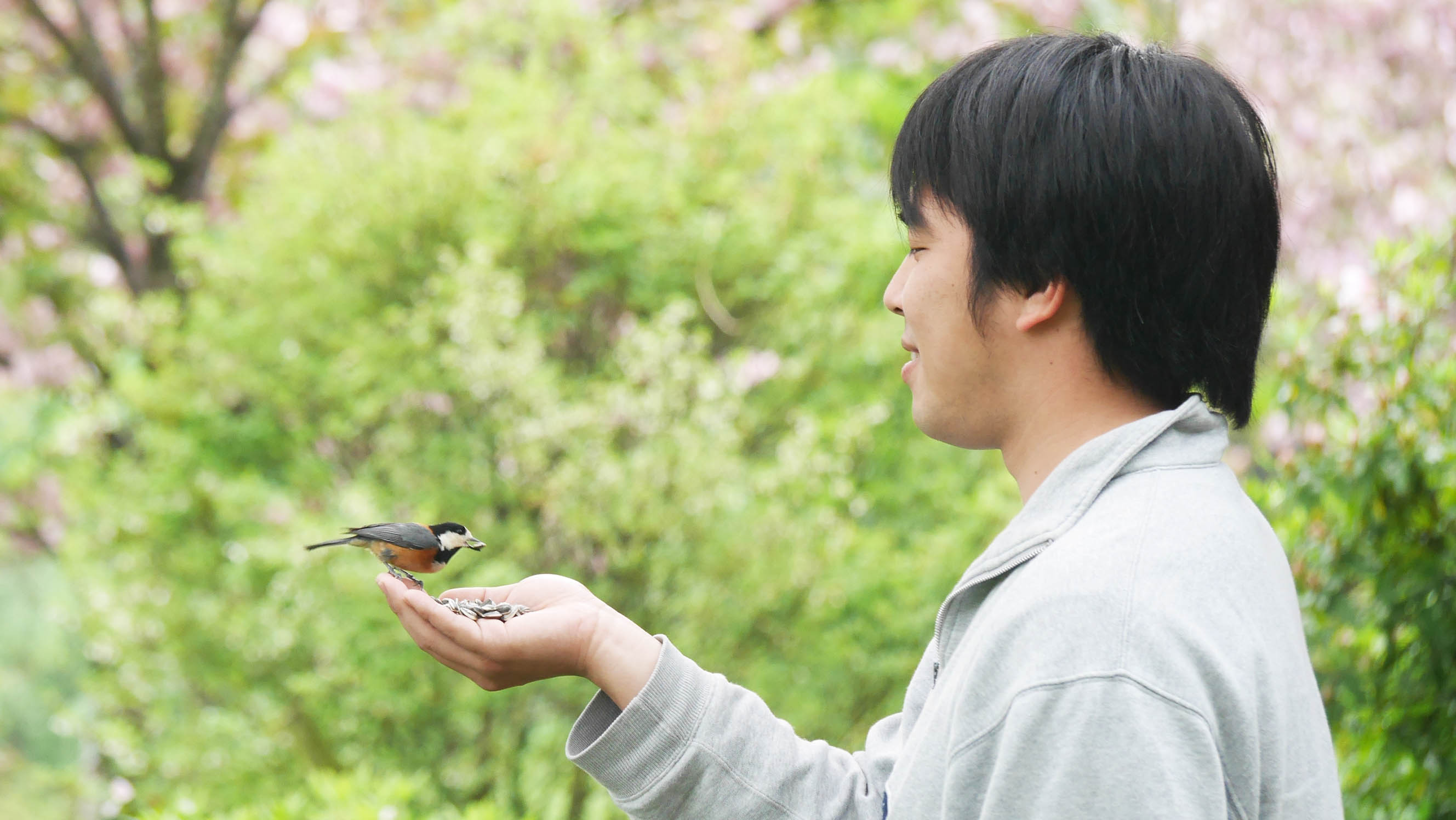 3月の桜の花が咲く頃からヤマちゃん達は縄張りを持ち始めるため、ヤマガラハウスに来る個体数は徐々に減って来て、触れ合い体験は終盤を迎えます。