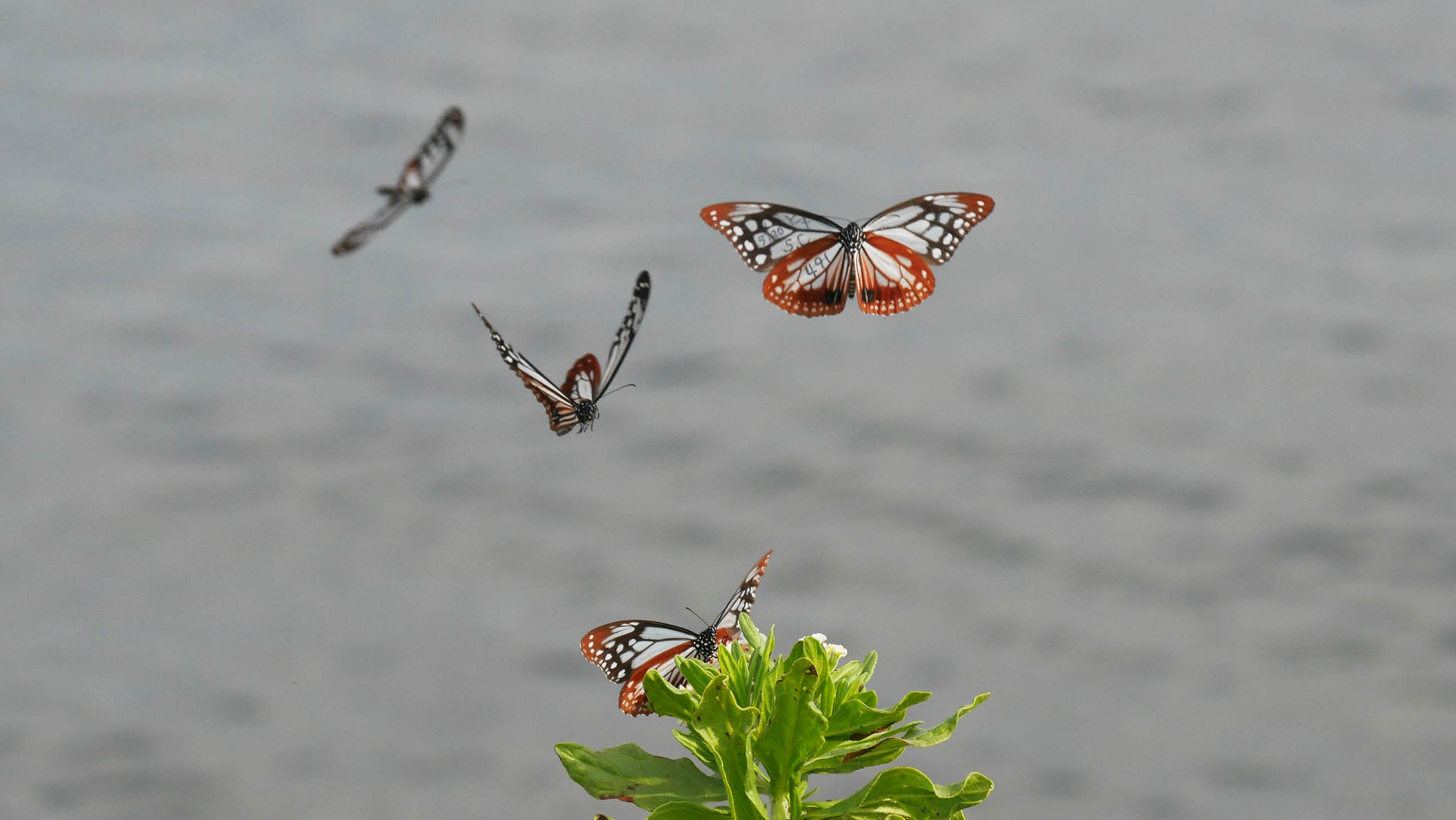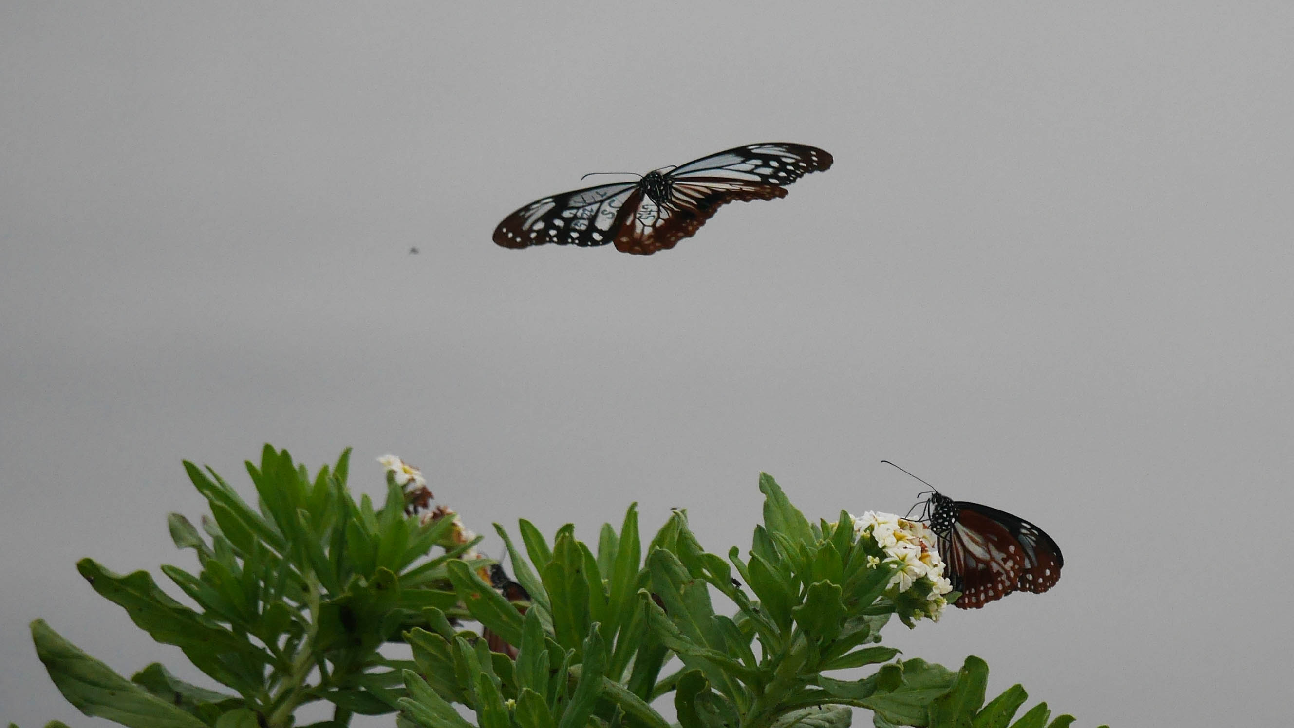 昨日の夕方に出現しているアサギマダラは50~60頭くらいと少な目。その少ない個体を良く見るとマーキングが施されています。アサギマダラは世界的にも有名な渡り蝶として1980年代に確認され、本格的に調査が始まったのは2000年以降なのです。