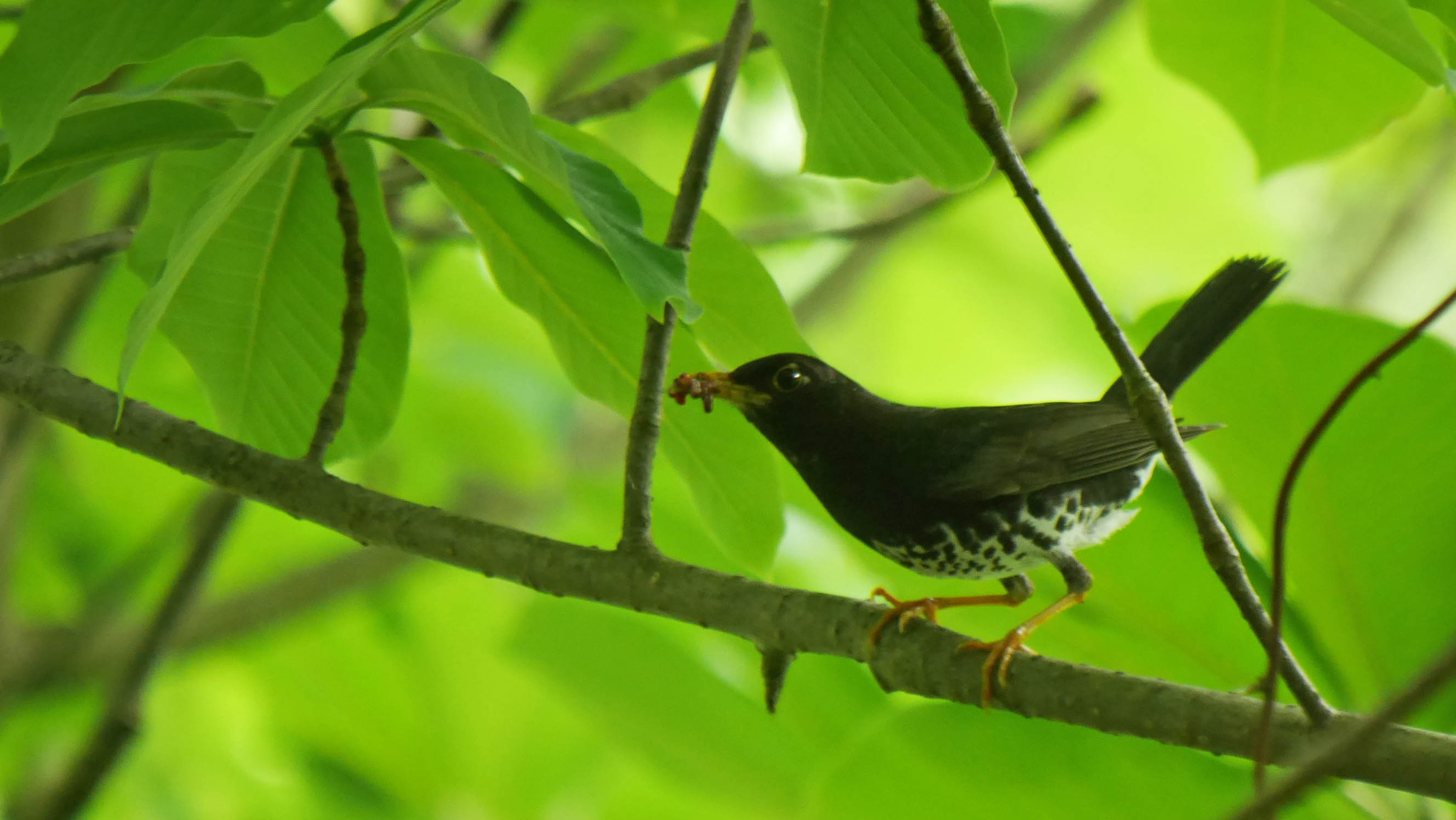 近くのクロツグミは子育てに入っています