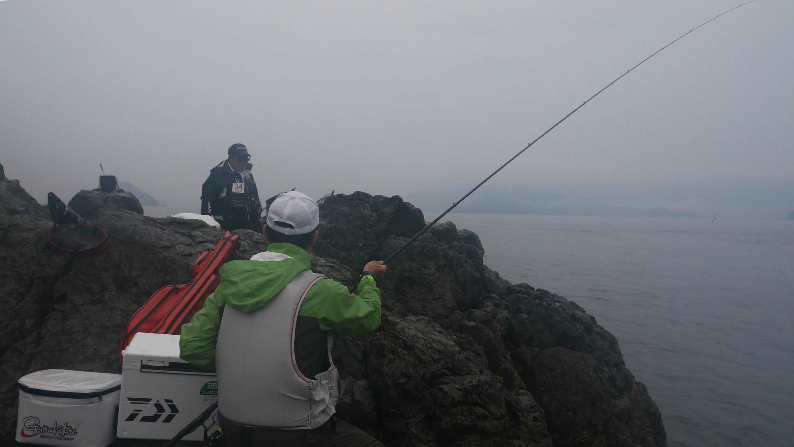 一回戦で戦った古庄君、私より40歳も若いですが、釣りがサマになっています