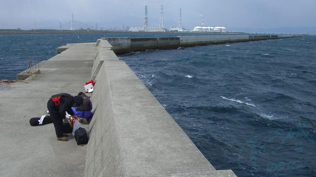 同じ新波止の赤灯台側が、北西風を少し後ろから受けるので頑張った・・・