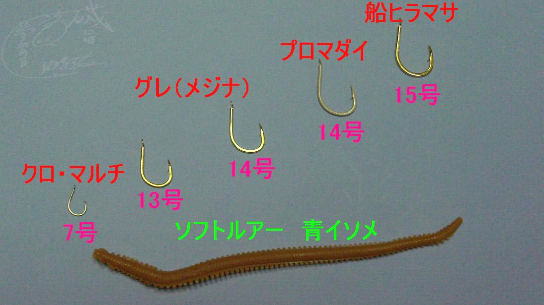 5年前に始めた時には、グレ(メジナ)の13号だった。竿はグレ遠征4号~Gチューン遠征4号へと変っていった。パワーSPフカセ5号になってから、13号が一度だけ延びてしまった。掛りが浅いのが原因だけど、竿がかなり強くなっているので、使う鈎もワンランク大きめにする。