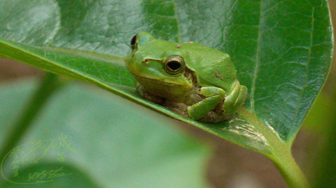 どこにでもいるけど、アオガエル科のカエルと決定的に違うのは、目から耳の方にかけて、黒っぽい線がアマガエルには入っている事。